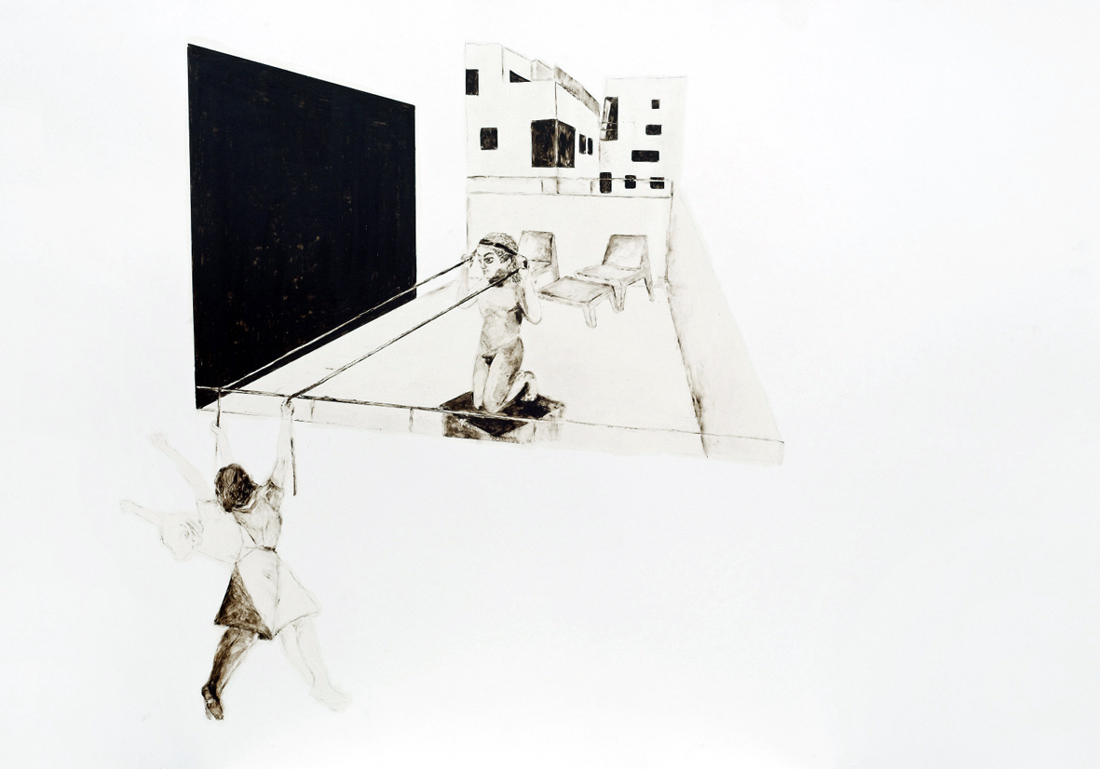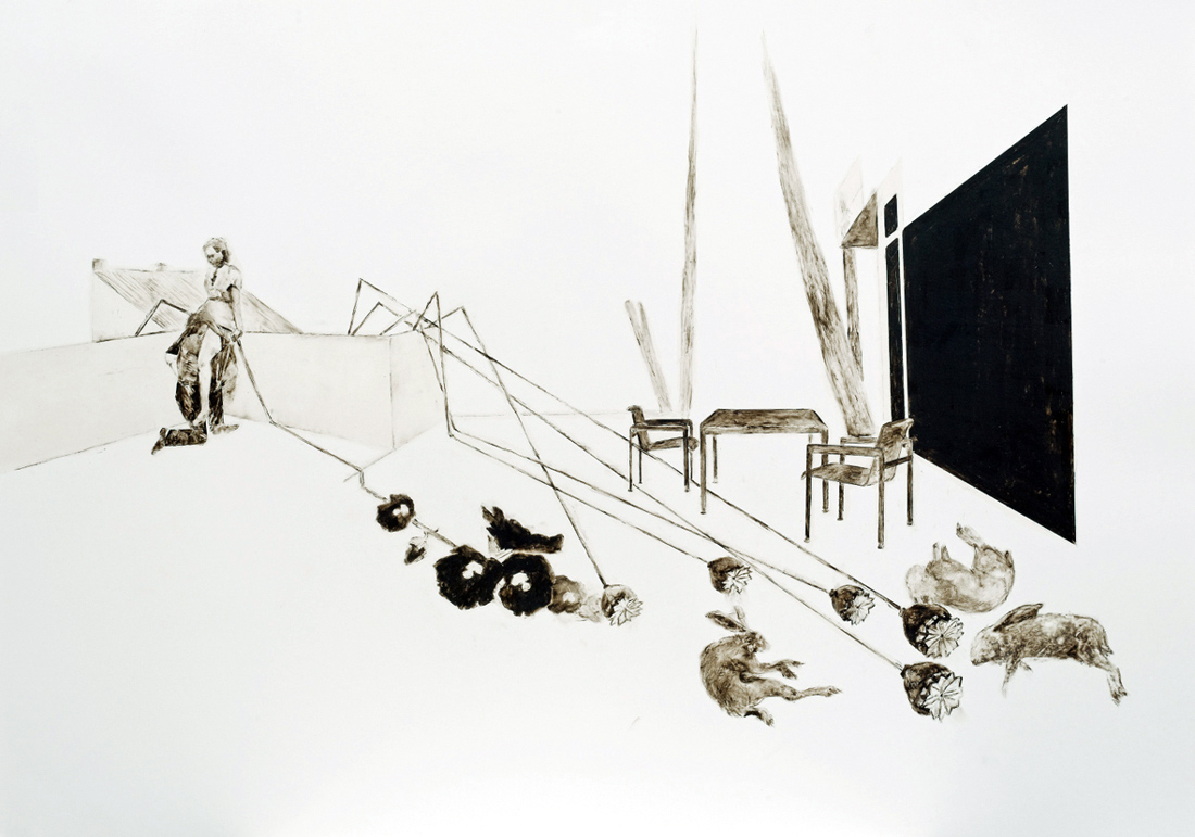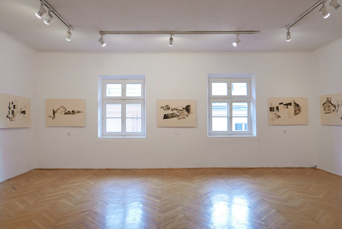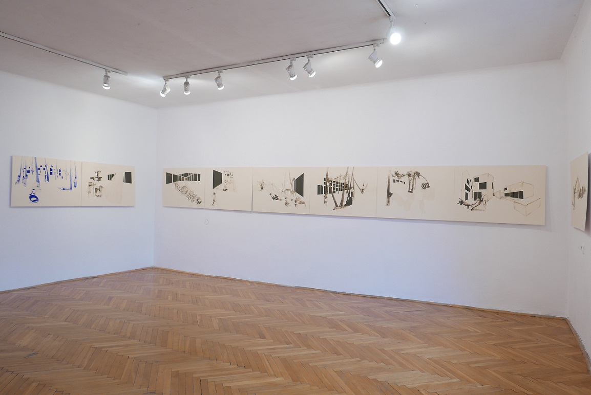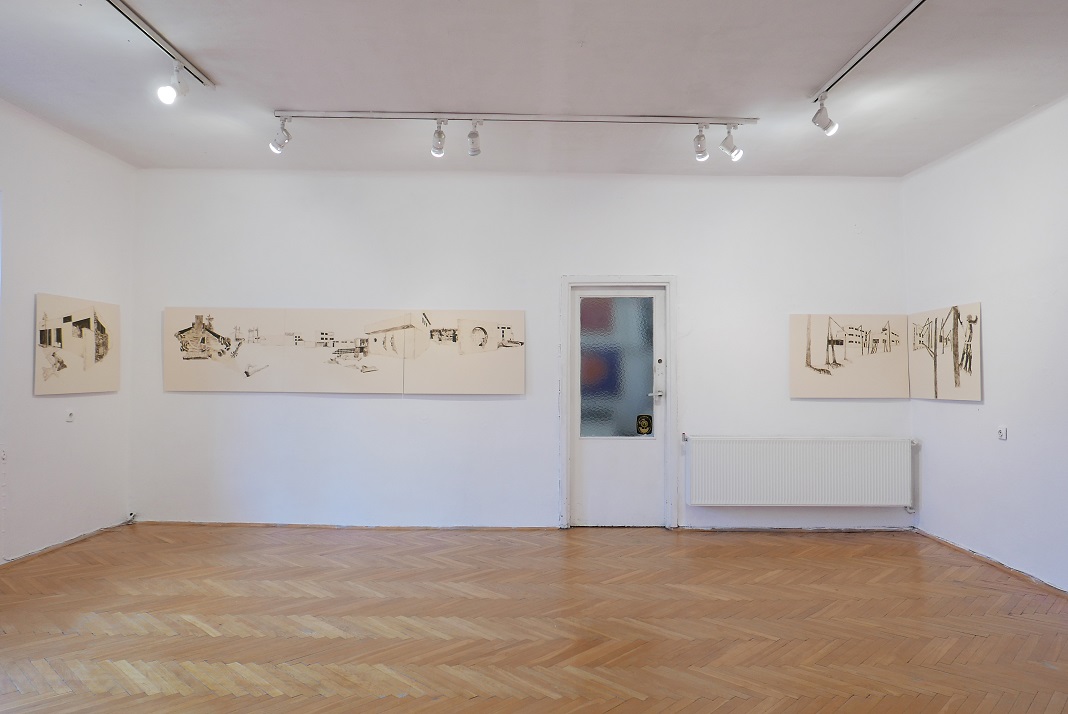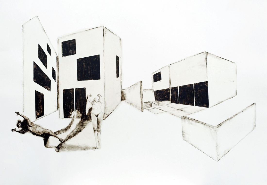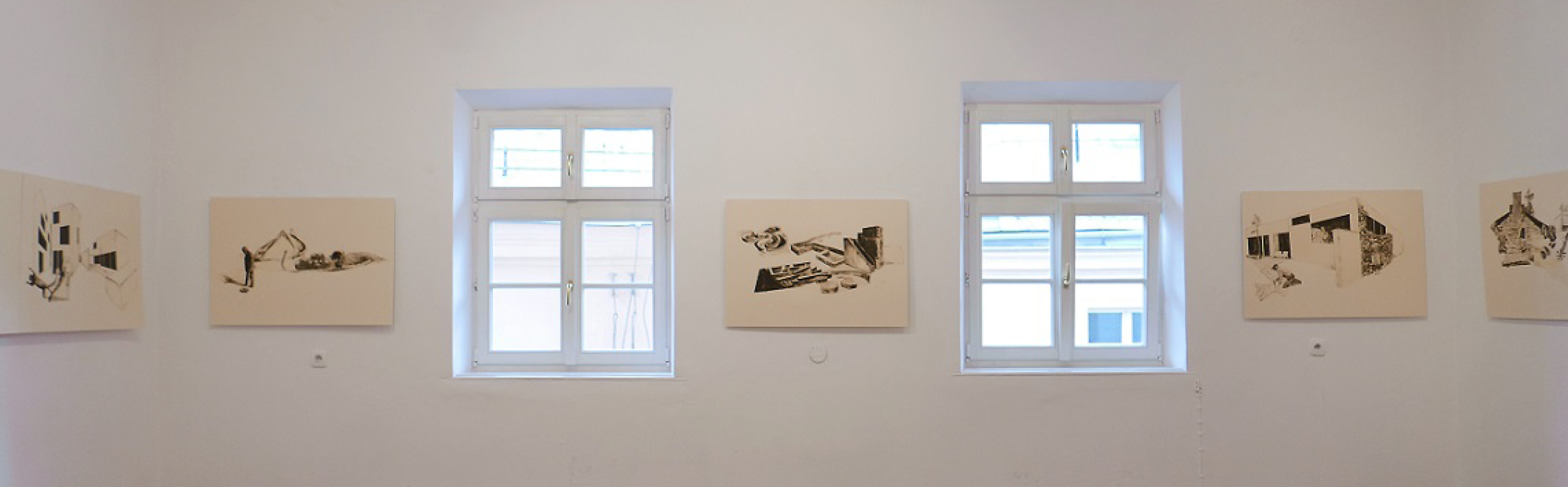 Pocztówki to 16 dużych pasteli na papierach, które powstały późnym latem i wczesną jesienią tego roku. Prace mają określoną kolejność i tworzą długi, naścienny fryz. Jest to poemat wizualny o intensywnej, onirycznej strukturze. Jego akcja dzieje się - o ile można tu mówić o „dzianiu się” - w otoczeniu segmentowej, modernistycznej architektury, której rytmiczność i przestrzenność są czymś w rodzaju partytury muzycznej tych utworów.