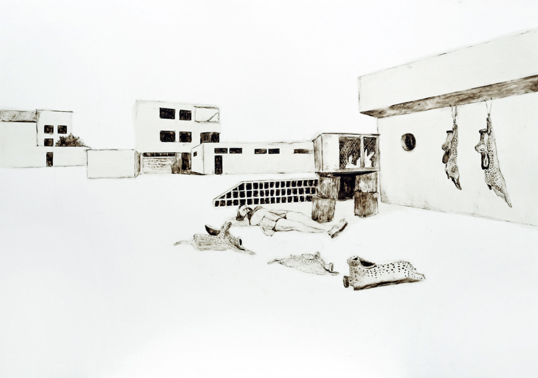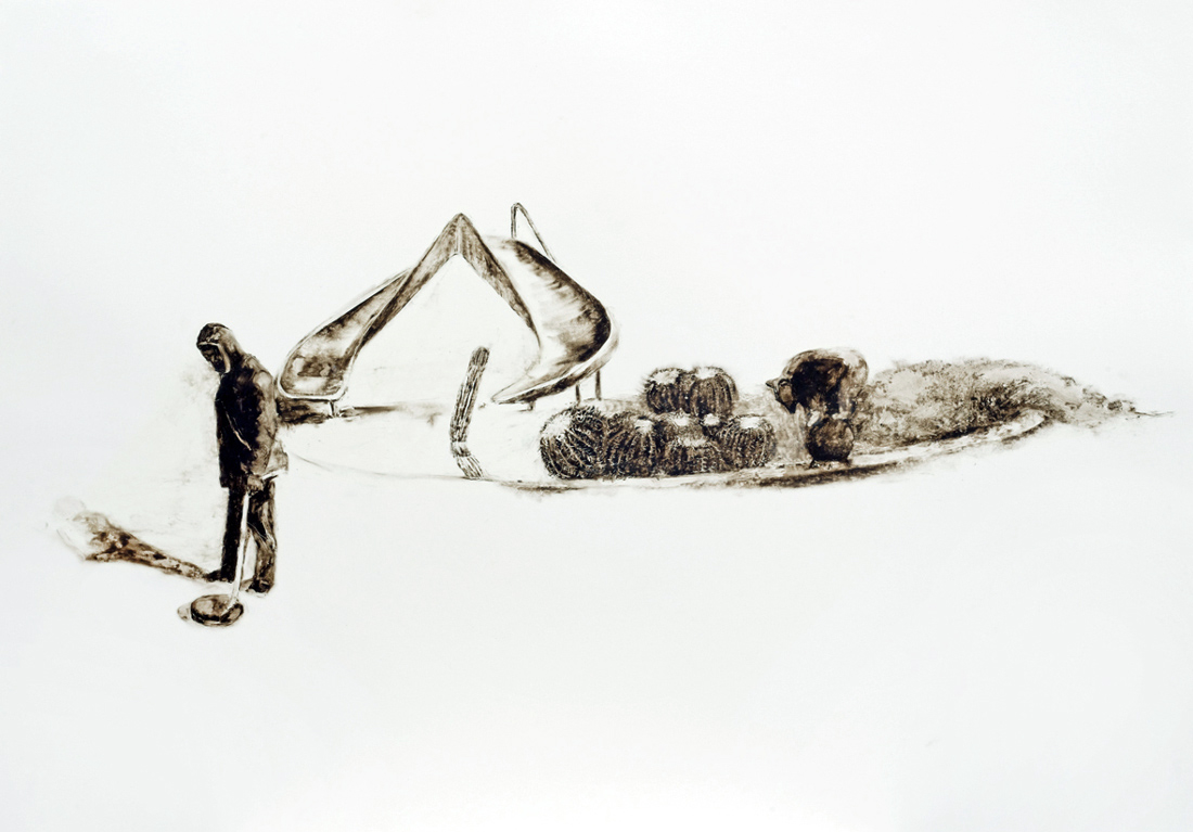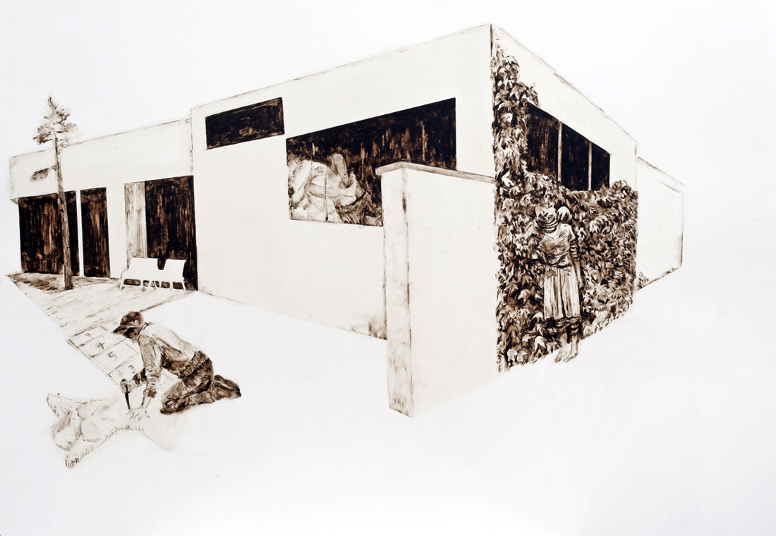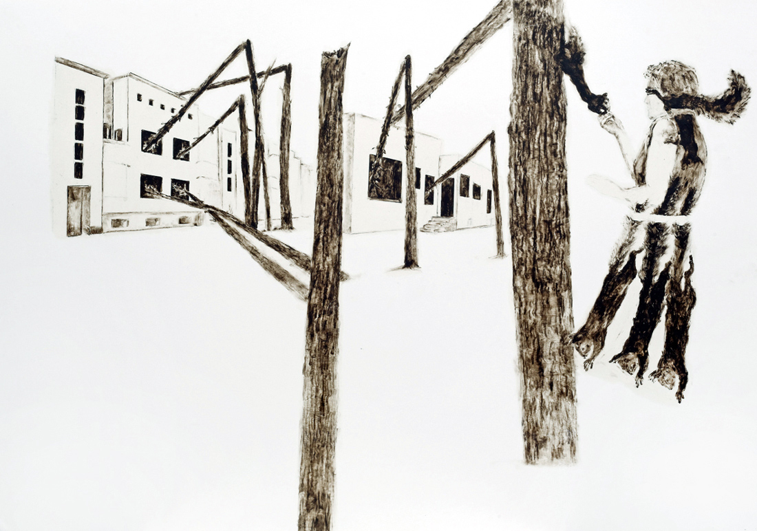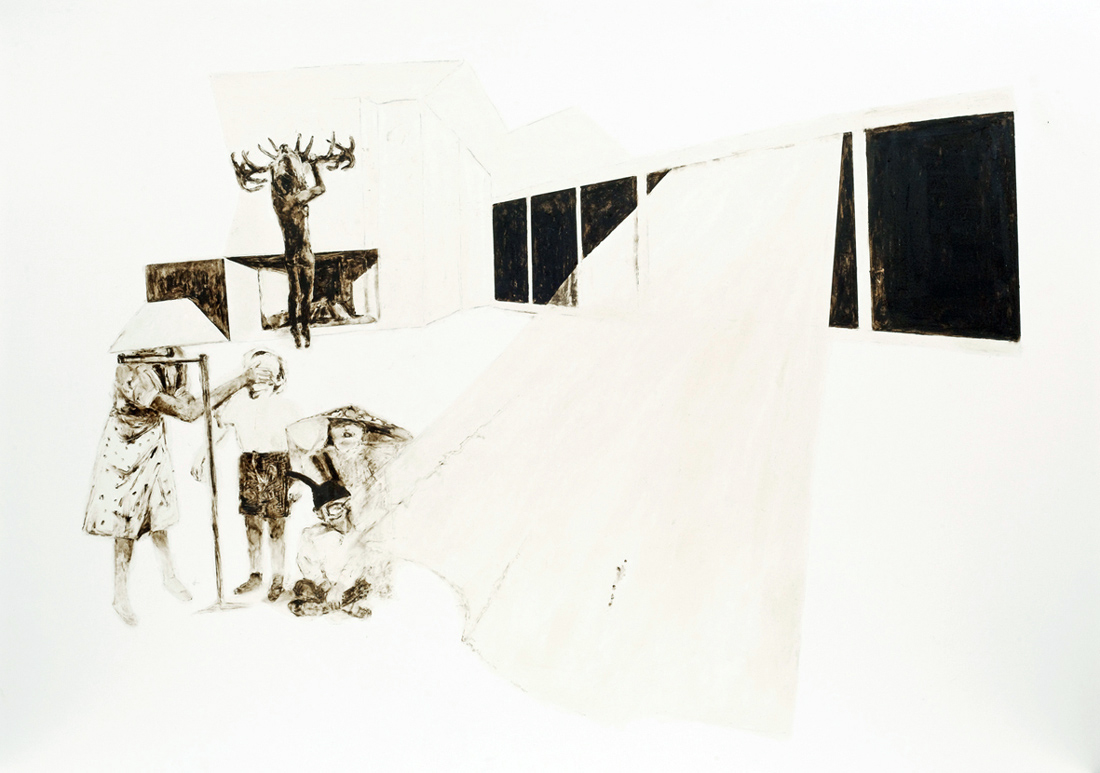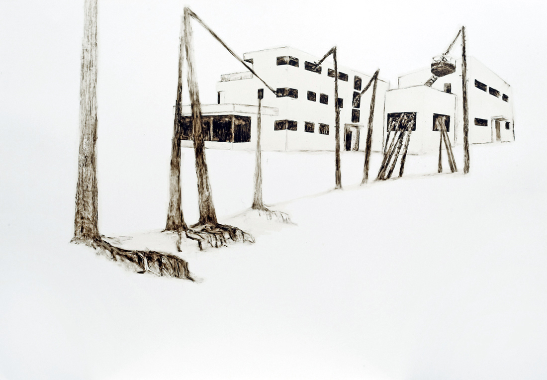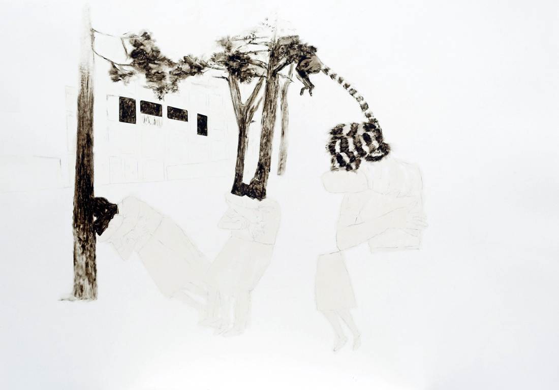 Pocztówki to 16 dużych pasteli na papierach, które powstały późnym latem i wczesną jesienią tego roku. Prace mają określoną kolejność i tworzą długi, naścienny fryz. Jest to poemat wizualny o intensywnej, onirycznej strukturze. Jego akcja dzieje się - o ile można tu mówić o „dzianiu się” - w otoczeniu segmentowej, modernistycznej architektury, której rytmiczność i przestrzenność są czymś w rodzaju partytury muzycznej tych utworów.