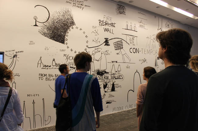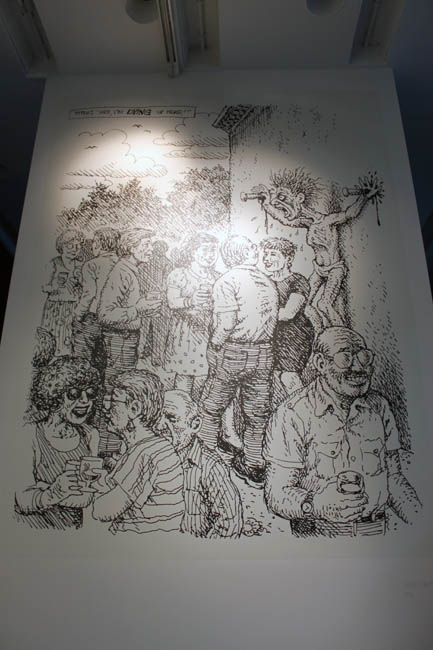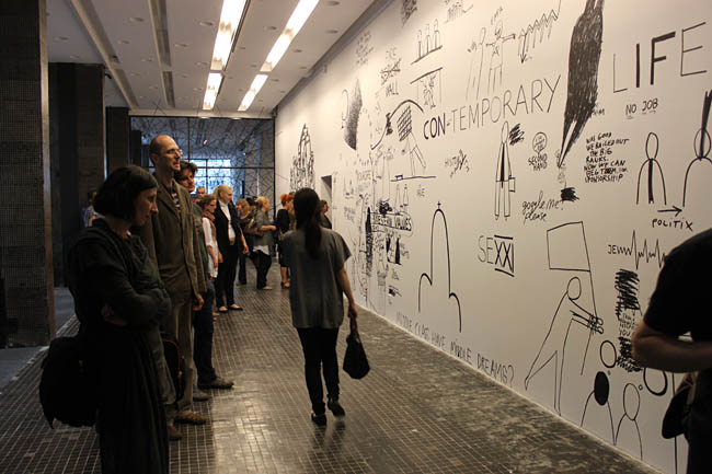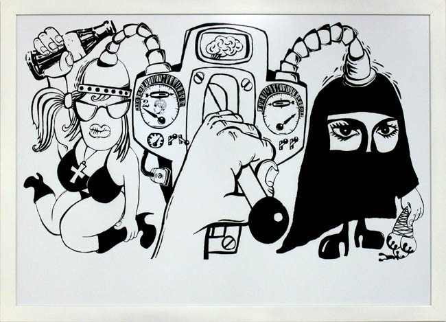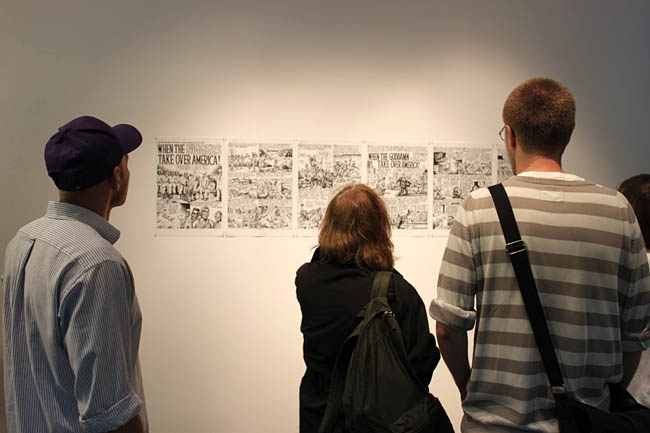 Oprócz czarno-białej kolorystyki prace łączy niezwykle prosty społeczno-polityczny przekaz. Operowanie linią pozwala twórcom na łatwiejsze pokazanie prowokujących tematów i używanie symboli. Pokazane na wystawie komiksy i animacje są często dosadne, przerysowane, brzydkie, obsceniczne i prowokujące. Mimo to nie rażą, bo odbieramy je jako dowcip. Mają niejako przyzwolenie na ostry komentarz polityczny. „Może nie zawsze sprawiedliwy ale wyrazisty, autentyczny i emocjonalny” - jak mówi jeden z kuratorów wystawy. Na ścianach MSN-u zobaczymy rysunki, które zostały wykonane specjalnie na tę wystawę. Niektóre tak bardzo spodobały się kuratorom, że postanowili zostawić je tu na stałe. W jednej z sal stworzono także niewielką przestrzeń czytelni, w której możemy usiąść i dowiedzieć się czegoś na temat prezentowanych artystów.