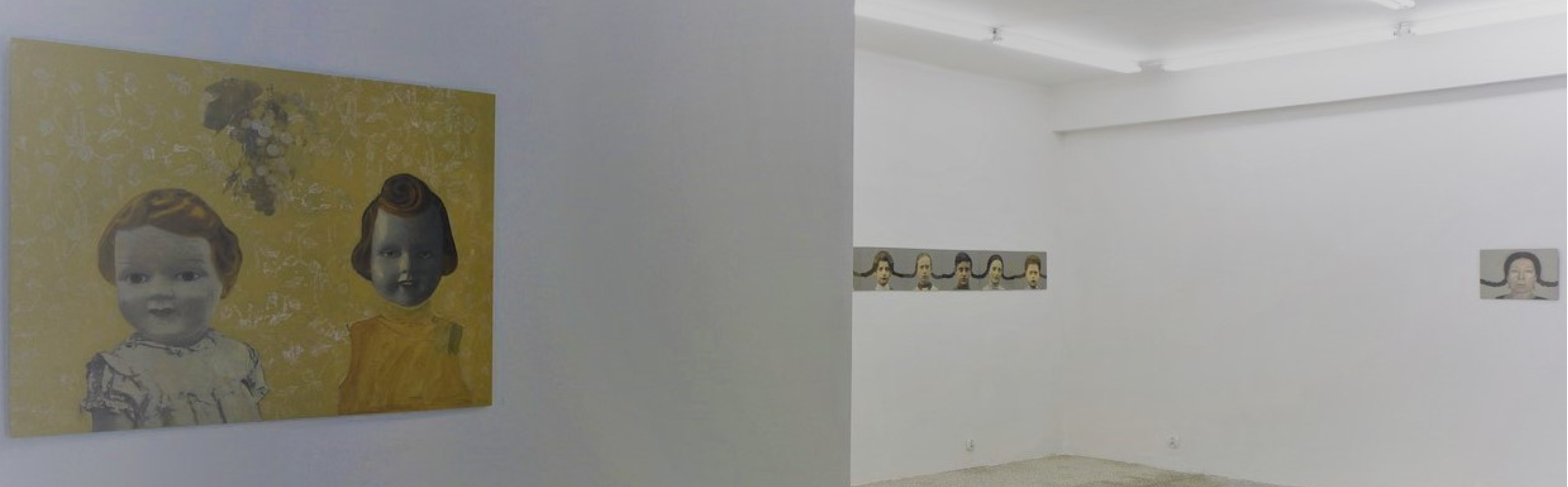 Ważną część wystawy stawowi instalacja, której źródłem jest szkolne zdjęcie z początku minionego stulecia pochodzące z Karlsbadu. Krystyna Piotrowska rozłożyła tę grupową, sepiową fotografię dziewczynek na indywidualne portrety. Ten gest podzielenia jest także pragnieniem zbliżenia się do osobistych historii, osobistych losów nieznanych dziewcząt. Te nowe portrety połączyła warkoczami, symbolicznie splatając ich życia w jedną, już nową historię. Oczywiście gest zaplatania włosów tak ważny w jej artystycznej ikonografii, i tym razem jest znaczący. Teraz jednak ich znaczenie związane z Zagładą, odchodzi w cień, wyrazistsze staje się pytanie o wspólnotę losów, o wspólny dziewczęcy świat, o dziewczyńską tożsamość, której symbolem zdaje się być warkocz.