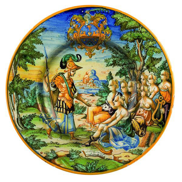 Majolika to włoska odmiana fajansu zdobiona barwnymi szkliwami o lśniącej, błyszczącej powierzchni. Majolika z dekoracją istoriato, wytwarzana od końca średniowiecza, rozwinęła się na przełomie XV/XVI wieku. Ponieważ posiadanie jej w tym czasie wyznaczało status społeczny, cieszyła się dużym powodzeniem wśród arystokratów, szlachciców, książąt, a także dworu papieskiego i władców Europy.