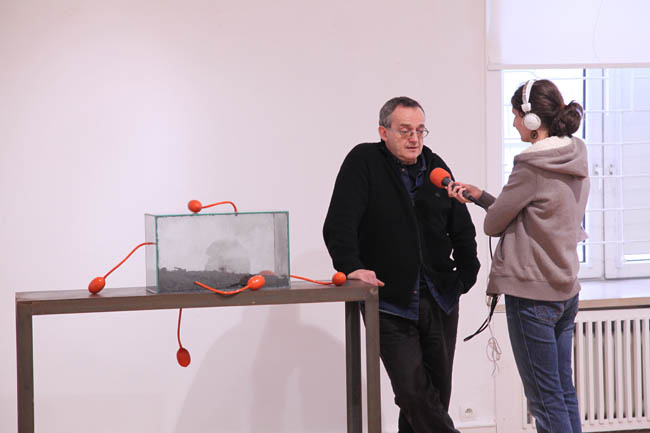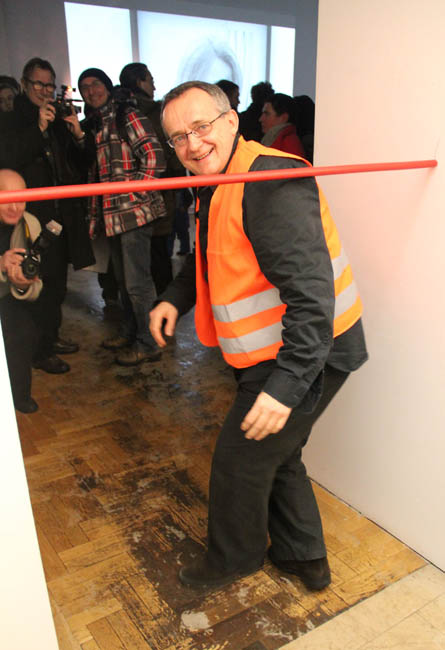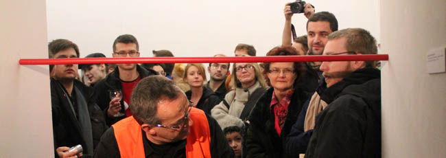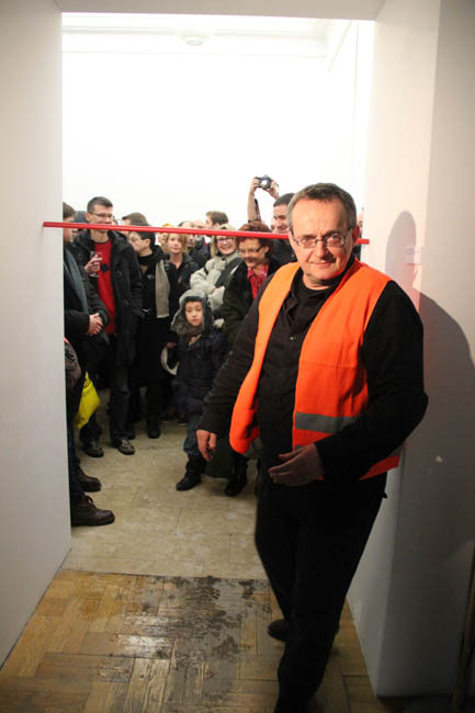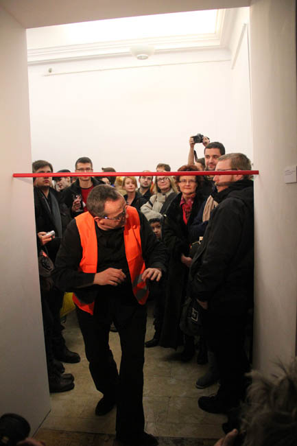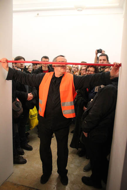 Czerwona poprzeczka jest wystawą o rzeźbie. O stanach skupienia materii, o jej plastyczności, fizyczności, o jej modelowaniu i nadawaniu jej formy posiadającej znaczenie. Chciałbym zbadać możliwości rzeźby we współczesnych warunkach. Miejscem prowadzenia tych badań jest Akademia Sztuk Pięknych. Na uczelni rzeźba jest oficjalnie rozpoznawaną dyscypliną artystyczną, i mało tego, jest także faktem administracyjnym! Akademia prowadzi Wydział Rzeźby, kształci rzeźbiarzy, przyznaje formalne dyplomy w tej dziedzinie.