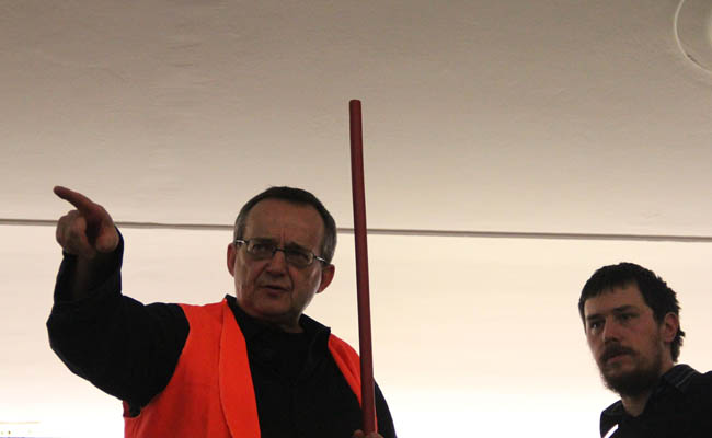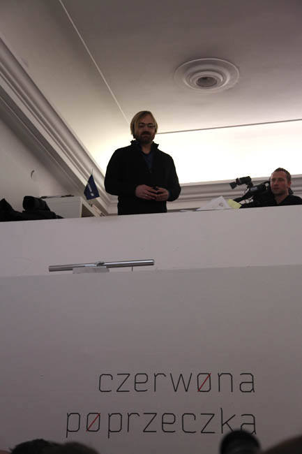 Czy stawką w grze o rzeźbę jest tak naprawdę nasze poczucie rzeczywistości, umacniane dotykalnością materialnego świata? Nie zapędzajmy się za daleko. Poprzestańmy na tym, że „Czerwona poprzeczka” jest wystawą, na której pytamy o możliwość uprawienia rzeźby bez popadania w bezpłodny tradycjonalizm, ale jednocześnie bez opuszczania tradycyjnego, ba, akademickiego obszaru rzeźby wyznaczonego przez takie jakości jak dotykalność, przedmiotowość, materia, jej plastyczność, ciężar, gęstość, objętość – jej rzeczywistość i fizyczna obecność. Figurą tej obecności jest kij w włożony we framugę przejścia między salami galerii przez Krzysztofa Bednarskiego - Czerwona poprzeczka, od której pochodzi tytuł wystawy. Ta forma w przestrzeni, tarasująca przejście, utrudniająca życie, zmuszająca do wykonania skłonu (albo, jednak, do dania susa), tworzy emblematyczną sytuację rzeźbiarską, w której przedmiot nabiera znaczenia, rzeźba staje się kijem włożonym w szprychy rzeczywistości i nie można przejść nad nią (ani pod nią) do porządku dziennego, ponieważ rzeźba fizycznie i naprawdę tu jest.