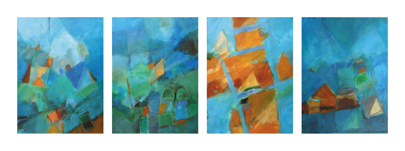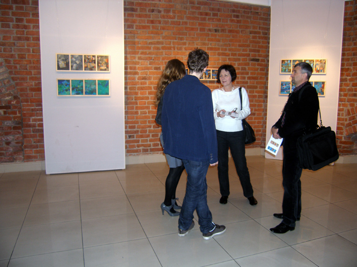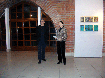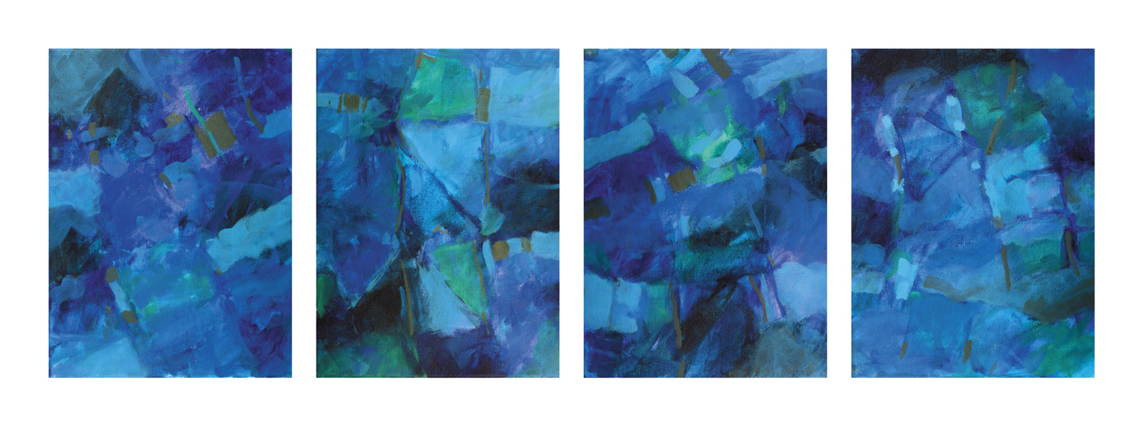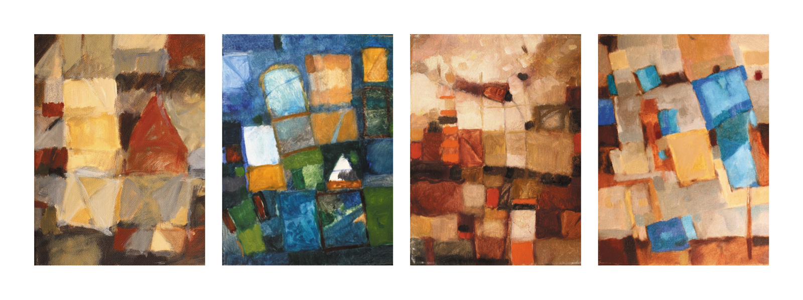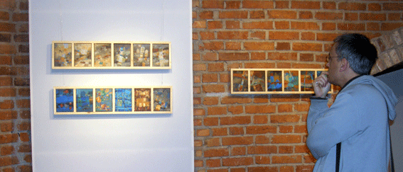 Obrazy Dariusz Skwarcana to prace formacie A4 pogrupowane przez autora i osadzone liniowo w otworach wspólnej podstawy z surowego drewna. Barwna poświata spina je w monochromatyczną jedność. Z bliska każdy z nich odzyskuje malarskie samostanowienie, oddaje jakiś moment eksperymentu, zapisującego się cyklami. Struktura przestrzenna na płaszczyźnie i układ kolorystyczny stanowią pole doświadczenia plastycznego Dariusza Skwarcana.