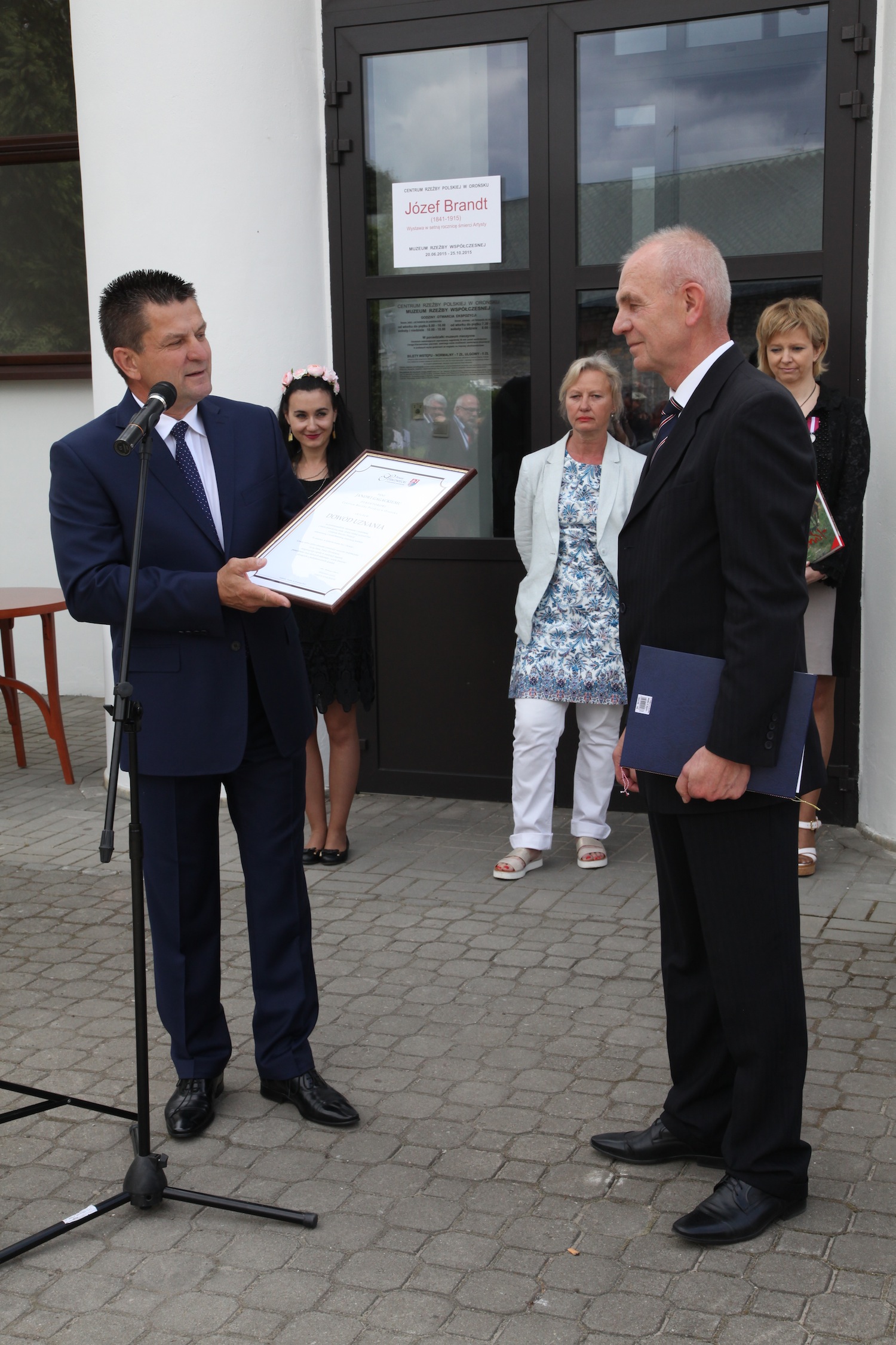 W sobotę 20 czerwca w Centrum Rzeźby Polskiej w Orońsku odbyło się uroczyste otwarcie trzech wystaw związanych z obchodami setnej rocznicy śmierci Józefa Brandta. Rocznica daje szansę na przypomnienie jego twórczości, a także samej postaci artysty, który - mieszkając na stałe w Monachium - szczególnie blisko związany był z Orońskiem. Tu bowiem, w majątku żony malarza - Heleny z Woyciechowskich Pruszakowej - rodzina spędzała lato. Z okazji jubileuszu Centrum Rzeźby Polskiej przygotowało obszerny program, którego głównym punktem jest wystawa Józefa Brandta prezentowana w Muzeum Rzeźby Współczesnej. Towarzyszą jej współczesne pokazy recepcji twórczości naszego patrona: ekspozycja Kłus, stęp, cwał w Galerii Oranżeria oraz projekt polsko-niemiecko-ukraiński Dziedzictwo. Patrząc na Brandta prezentowany w Galerii Kaplica, we wnętrzach pałacu, na tarasie kawiarni Domu Rzeźbiarza i w przestrzeni parku, gdzie odbył się performance niemieckiego artysty Christopha Both-Asmusa Tree Walker. A Moment in Time przed wejściem do pałacu Józefa Brandta.