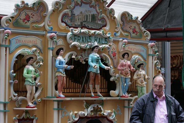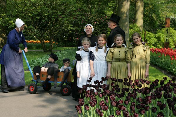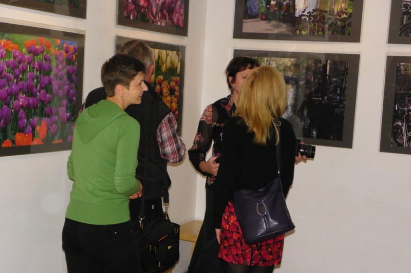 Oczywiście, tulipany! Perfekcyjnie odbite w nasyconych kolorach układają się w dywanowe wzory. Rowery też obowiązkowo – przy bulwarze nad wodą. Gdzieś w parku obiektyw uchwycił grupę w historycznych ubiorach. Rodzina pastora z dziatwą i opiekunką? Mężczyzna w ciemnym okryciu i cylindrze, panie w charakterystycznych białych czepcach, dziewczynki w sukienkach z lamówkami albo z fartuszkami, chłopcy w kaszkietach, przykrótkich spodniach i trzewikach. Jest nawet drewniany wózek z dyszlem ale już na gumowych kółkach. Kręci się diabelski młyn i rzuca cienie na dostojne kamienice. Nowoczesna architektura hołduje tradycji, a jak byś myślał, że tam kiczu nie spotkasz, to akurat nieprawda, bo wszędobylskiego kamera znalazła. Młodzi ludzie na kamiennej ławie wyznaczają niespieszny rytm życia. Wszystkie widoki potwierdzają nasze wyobrażenie o Holandii w całej rozciągłości. I na pewno mogą się dobrze przysłużyć nauce fotografowania.