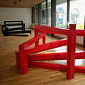 w których artysta posłużył się początkowo drewnianymi, a później metalowymi belkami. Rzecz jasna niewiele te konstrukcje mają wspólnego z "Beam L" Roberta Morrisa. W przypadku François Morellet są to konstrukcje zbudowane z przewróconych równoległościanów częściowo „zanurzonych” w podłożu. Różne wersje „Beam” powstają systematycznie od początku lat osiemdziesiątych ubiegłego wieku. W przypadku wystawy w Angers dwie dużych rozmiarów kompozycje zostały zaprezentowane na tarasie, niedaleko rzeźby Niki de St Phalle znajdującej się