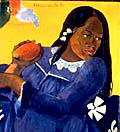 - Po co? (nie wiem co przyszło mi do głowy, ale odpowiedziałem:) - Szukam kobiety, a w Hitii jest ich dużo i są ładne. - Chcesz jedną z nich? - Tak. - Jeżeli chcesz to ci ją dam, to moja córka. - Jest młoda? - Tak - Ładna? - Tak. - Zdrowa? - Tak. - Idź więc po nią. Tak Paul Gauguin opisuje poznanie ze swoją pierwszą tahitańską „żoną”. Nigdy nie wyobrażał sobie, że jego chęć przeniesienia się do życia „prymitywnego” może odbyć się tak prosto i tak naturalnie. Od wielu już lat szukał „raju”, a we Francji r