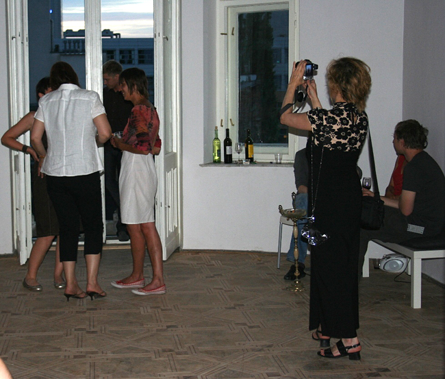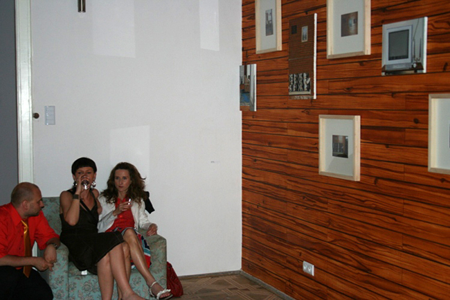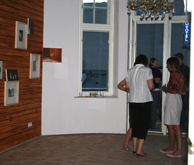 Tymczasem inaugurująca ekspozycja to zbiorowy pokaz dokonań 4 artystów. Prace każdego z nich zajmują osobne pokoje. W tym, z widokiem na dachy kamienic Śródmieścia jest to instalacja Agaty Biskup. Na ścianie namalowana jest boazeria, na niej zawieszone zdjęcia i obrazy przedstawiające przedmioty z dawnego mieszkania artystki. To nostalgiczna opowieść o miejscu niezbyt może artystycznym i dizajnerskim, jednak wyczuwa się tęsknotę do tej zwyczajności.