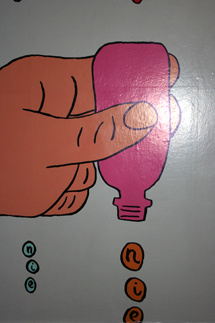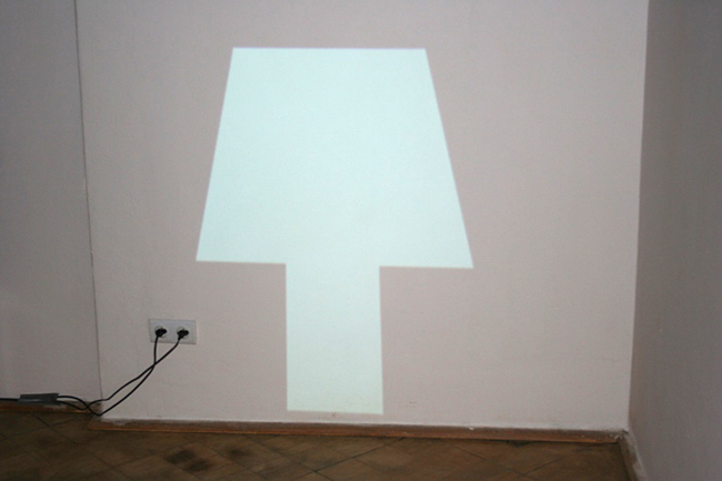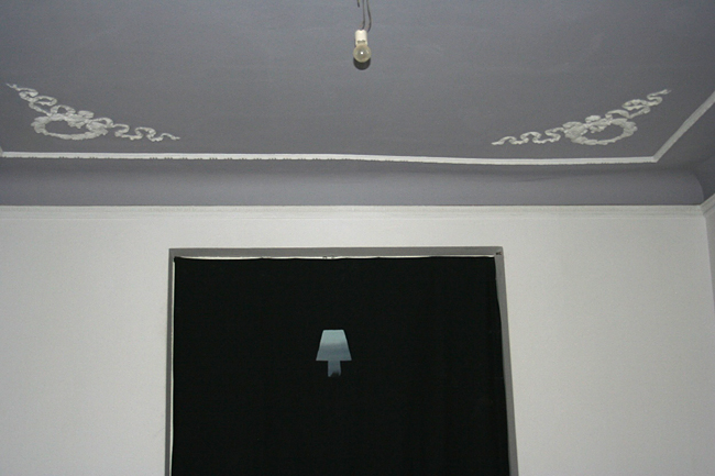 W zaciemnionym pokoju, do którego prowadzi wąski korytarz - praca Bartka Muchy z motywem geometrycznym przypominającym nocną lampkę. Kształt ten został rzucony w formie światła na ścianie, świecącego znaku na ekranie telewizora, a także urokliwego wycięcia w czarnej kotarze zasłaniającej okno. Przez wycięty kawałek widoczny jest skrawek błękitnego nieba. W ciągu dnia przepuszcza on światło słońca, które rzuca przesuwający się po ścianie kształt lampki.