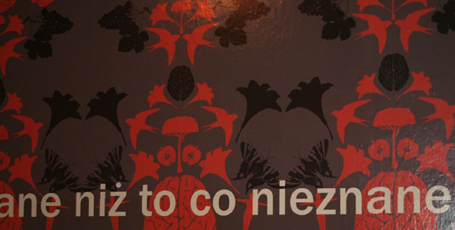 Ostatnia sala należy do galerii Rusz. Według mnie artyści snują w niej opowieść o mieszkaniach młodych Polaków. Pomalowali ściany w ten sposób, że wzory rodem z Ikei, chociaż ładne i przyjemne zawierają element niepokoju.