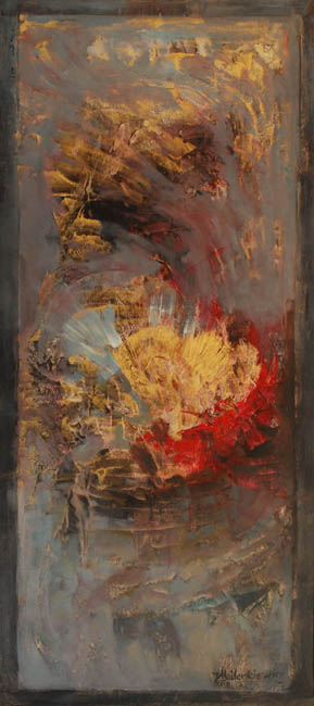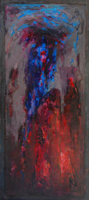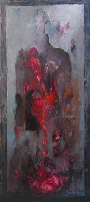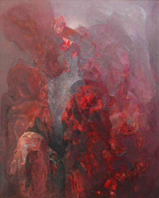 Z pozoru abstrakcja, którą zwykliśmy kojarzyć z pustką, ale tu czysta i mocna ekspresja, bez jakiejkolwiek kalkulacji. Ręka swobodnie puszczona w ruch, poddana intuicji, skrywanym napięciom ducha i żył. Jest w nich i cisza, i krzyk, a nawet krew, bo czerwieni tworzących akcenty i napięcia niemało w tych obrazach, ale są i błękity i szarości subtelne, wyciszone, są i nienahalne, żółcieniowe, promieniste, ciepłoludne przebłyski słońca. Słowem - narracja niby czysto malarska, ale i coś więcej, coś ponadto, co zresztą nie jest takie dziwne, zaskakujące, bo już dużo wcześniej "pogrążony" był w cyklu "Katedry", w którym budował własne, irrealne wnętrza katedralne, brzmiące ciszą, muzyką, historią... Ta świętość - wyznaje autor - to ulotność, niezwykłość, uwolnienie od praw grawitacji.