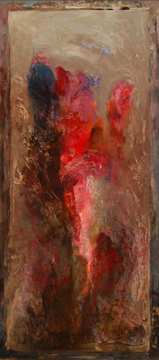Zaprezentowane na wystawie prace mają formę wydłużonego prostokąta, wyeksponowanego w pozycji pionowej. Pamiętając rozciągnięte wszerz, panoramiczne pejzaże Maślankiewicza widzimy, iż artysta gra z formatami swoich dzieł. Obrazy różnią się od siebie rozmiarami. Jak sugerują to tytuły prace z cyklu Święte Obrazki mają mniejszy format, natomiast Święte Obrazy – większy. Dominują w nich nasycone barwy - błękity, szarości, żółcienie, czerwienie i zielenie, które wydają piąć się ku górze.