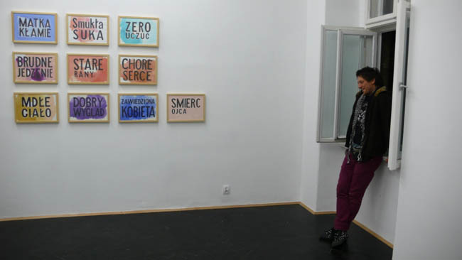 Prace pokazane na wystawie w galerii Delikatesy to mini-narracje, short short-stories, w których każde słowo ma sens i stanowi - wbrew regułom języka polskiego - osobne zdanie, nawet jeżeli jest tylko jego równoważnikiem. Wystawa jest jak przypis do historii literatury - literatury, w której nie ma dobrych i złych książek. Jest to literatura, jaka interesuje artystkę, wybrana skojarzeniowo i intuicyjnie. Są tu tematy, które Jadwigę Sawicką zajmują osobiście. Emocjonalne poszukiwania w tekście, w sensie słów i znaków, są malarską ilustracją wewnętrznych historii języka i jego autonomii.