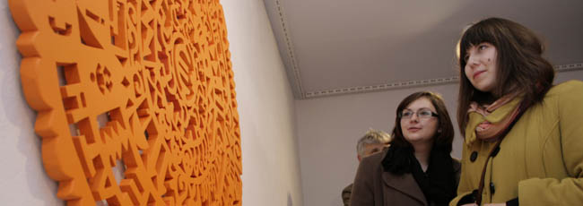 Moim marzeniem byłoby obklejenie całego pomieszczenia wlepkami. Na pewno wywołałoby to klaustrofobiczne wrażenie, jak z filmów - powiedział na wernisażu artysta Jakub Pieleszek - Próbowałem wpisać się w dostępną przestrzeń galerii.
