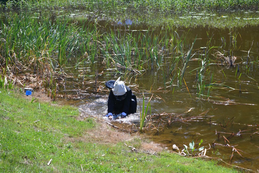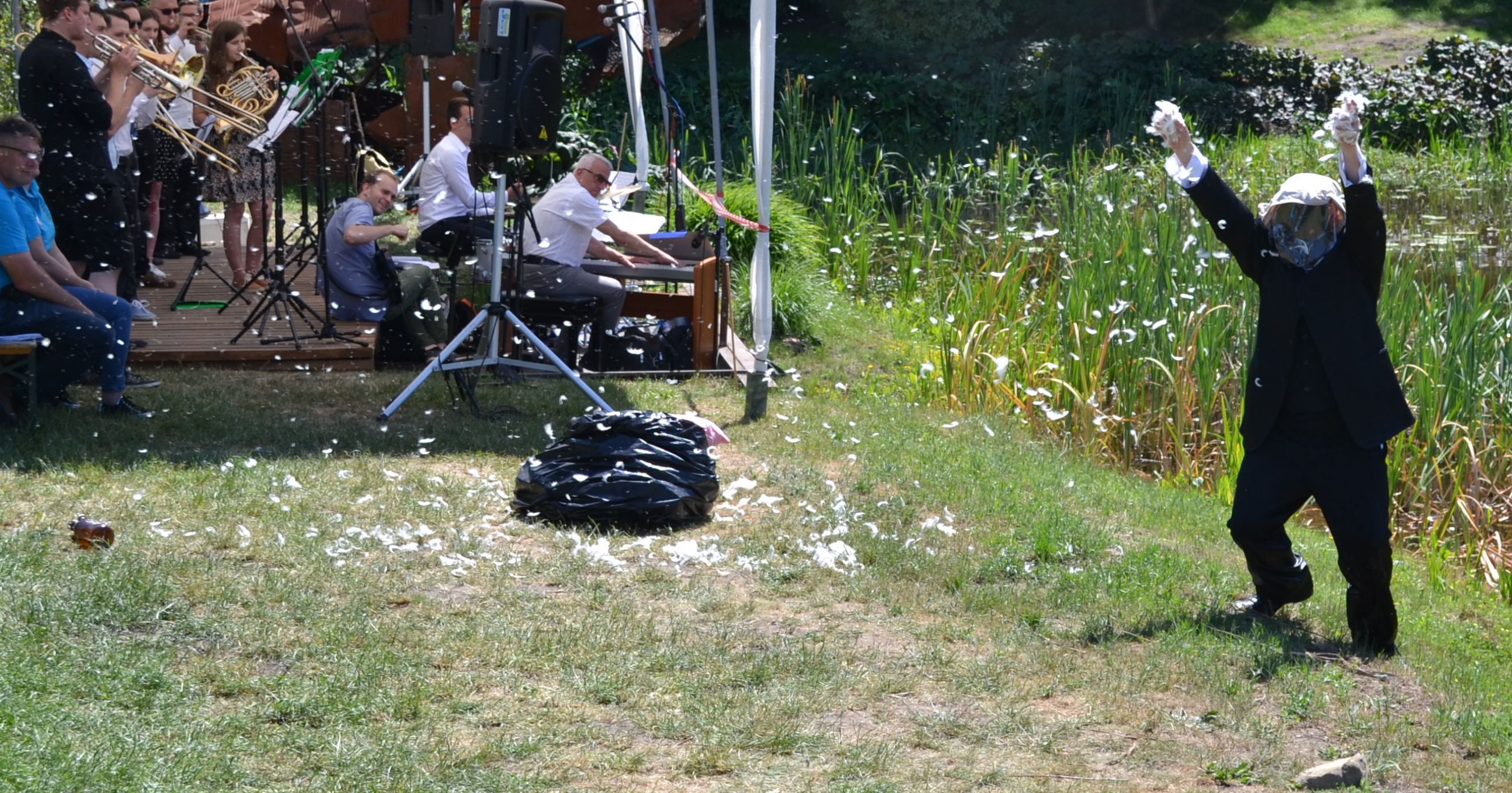 Artysta z beczką pełną pierza. Beczkę w Szumiłowie zastąpił czarny worek na śmieci. Worek wypełniony artefaktami , to balast pobożnych życzeń: życzenia dobrych płodów rolnych, dobrej pogody, szczęśliwego roku, dobrego zdrowia. Worek artefaktów wymieszany z przedmiotami codziennego użytku i pierzem stał się trybuną do monologu o ochronie wspólnego dobra. Artefakty podczas akcji performatywnej zostały zniszczone albo wymazane, na chwilę. To symboliczny bunt artysty na zawłaszczanie przyrody, dobra wspólnego, przestrzeni publicznej. Zawłaszczania pola sztuki przez hochsztaplerów kultury, urzędników kultury i polityków. Jest każdorazowo powtarzalną próbą nawiązania kontaktu z wyczuwalnymi energiami Ziemi. Performer, podczas procesu tworzenia performance dokonuje wyboru określającego, które dzieło ,,przetrwa”, a które zostanie wymazane. Tworzenie przypadku albo nie, zamierzone budowanie ołtarza dobrej energii. Akcją performatywną zamyka artysta pewien rozdział w procesie tworzenia sztuki wizualnej w przestrzeni Szumiłowa. Beczka jako zbiornik przedmiotów różnych bywała ,,rekwizytem” używanym w poprzednich akcjach artysty w Polsce, Szwecji, Tajlandii i Chinach.