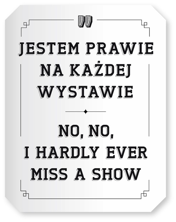 Jestem prawie na każdej wystawie to dla nas, widzów, konfrontacja z nami samymi. Taka wystawa była potrzebna, bo wychodząc z niej zadajemy sobie pytania: „Po co chodzimy na wystawy i wernisaże?” „Jak bardzo jesteśmy w nie zaangażowani?” Ale przede wszystkim „Co z nich wynosimy?”