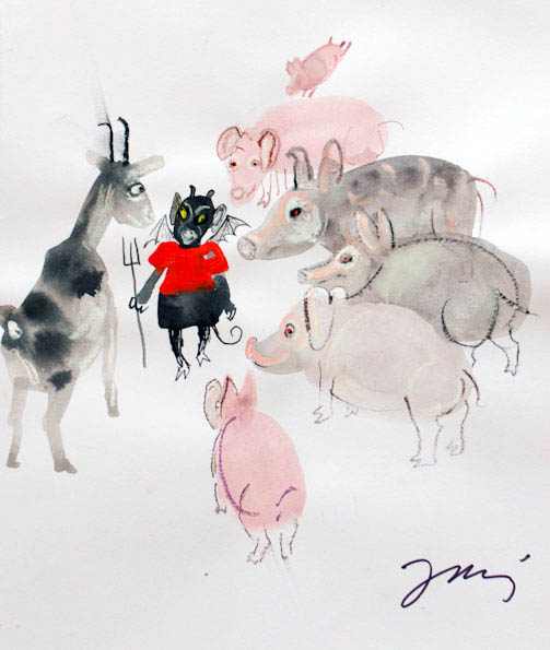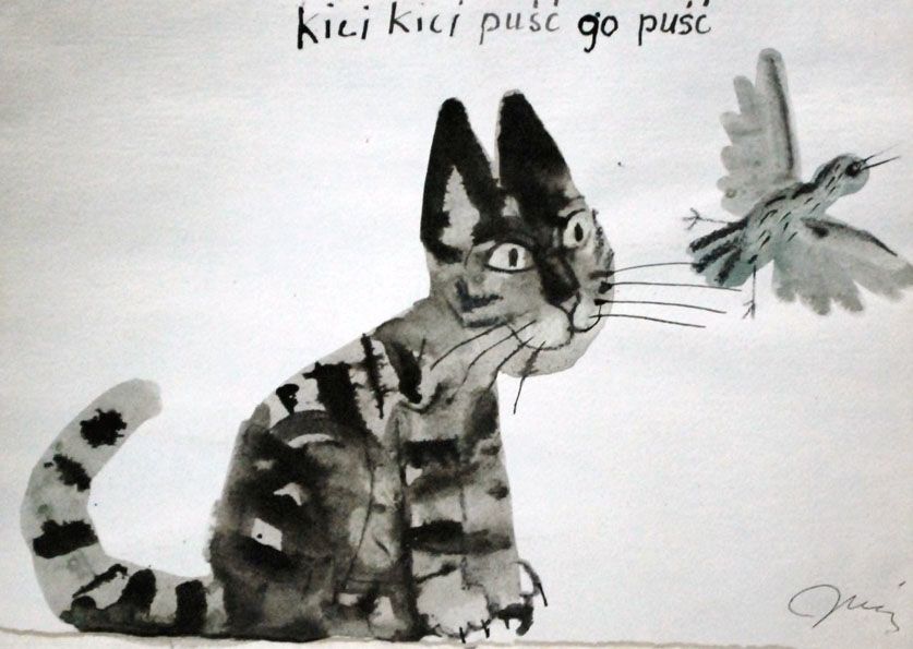 Prace Józefa Wilkonia prezentowane obecnie w salach ekspozycyjnych Galerii SD to zbiór ilustracji opatrzonych wspólnym tytułem Zilustrował Józef Wilkoń, będących interpretacją literatury dla dzieci. Autorami utworów literackich stanowiących inspirację plastycznych przedstawień są m.in. Agnieszka Taborska - pisarka, historyczka sztuki i romanistka, której bajki dla dorosłych i dzieci wydano w Polsce, Niemczech, Japonii i Korei; Mischa Damjan – jugosłowiański pisarz, autor wielu bajek dla dzieci; Ulf Stark – szwedzki pisarz, którego książki dla dzieci i młodzieży znane są także w Polsce. Na wystawie, co należy podkreślić, prezentowane są również ilustracje książek autorstwa Józefa Wilkonia (np. Kici kici miau), a także jego syna Piotra pt. Rosalind das Katzenkind oraz Gold fur Konig Otakar.