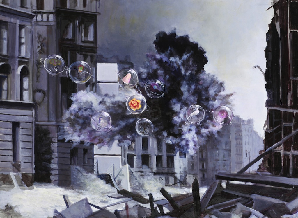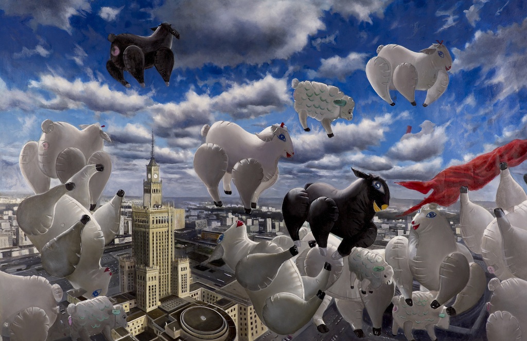 Obecne na obrazach nadmuchiwane, wznoszące się nad ziemią obiekty od dawna fascynują Julię Curyło. Są ulotne w swej materialności, symbolizują zarazem nietrwałość i fizyczność. Wewnątrz puste, łatwo ulegają zniszczeniu. Są jednak także obiektami pożądania – kolorowymi, o pociągających formach, kuszącymi, ale też banalnymi, powielanymi masowo. Są znakiem naszych czasów przesiąkniętych kulturą masową i hasłami „szybko”, „tanio”, „efektywnie”. Ich malarska trawestacja jest przewrotnym komentarzem na temat sztuki – okazuje się bowiem, że banalne obiekty też mogą się nią stać.