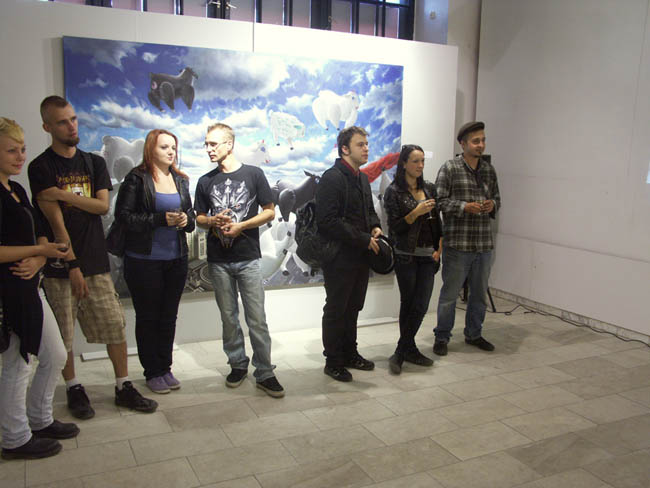 Podczas wernisażu odbyła się projekcja materiału dokumentującego dzieje wielkoformatowej reprodukcji pracy Baranki Boże, która wygrała organizowany przez warszawską galerię Pociąg do Sztuki konkurs A19 i ozdobiła w styczniu 2010 roku przestrzeń nad peronem metra Marymont. Reprodukcja szybko stała się sławna, po tym gdy najpierw zniszczył ją jeden z oburzonych przechodniów, a następnie przedwcześnie ją usunięto. To wtargnięcie sztuki w przestrzeń publiczną obudziło wiele emocji i dyskusji, pokazało siłę oddziaływania prac Curyło i ich potencjał do budowania własnych historii. Potencjał ten ujawnił się również w legnickiej galerii, gdy podczas wernisażu widzowie najpierw zaczęli bawić się wielką nadmuchaną kulą, następnie wręczyli artystce tabliczkę z hasłem „Uwolnić kury”.