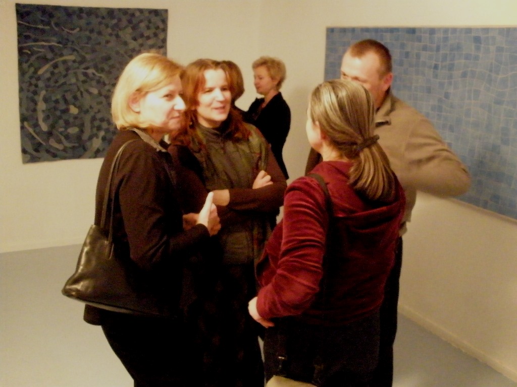 Praca Mostowskiej składa się z kilku tkanin, imitują one dno basenu – błękitne kostki terakoty, które ulegają deformacji pod wpływem ruchu wody. Kto nie zna takiego widoku? Jedne z nich są wykonane z filcu, inne z farbowanej i naklejanej tkaniny. Budzą skojarzenia z relaksem jaki przynosi pływanie. Poza tym wzory , jakie tworzy ruchoma woda są hipnotyczne, niekiedy nie można oderwać wzroku od ruszających się płytek na dnie basenu. Takim fascynacjom ulega też sama artystka, która z tego faktu postanowiła uczynić motyw dla swojej instalacji.