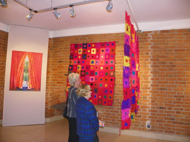 "Miłomarki w czerwieni" – obie malarki mrużą oko w stronę gości Starej Prochowni. A tak naprawdę proponują spotkanie na serio – porozmawiajmy o życiu i miłości, o tworzeniu i sztuce, odnajdźmy się w pobratymstwie bycia w świecie. Fundują przekroczenie estetyki przeżycia, prowokują rozważanie tego, co najważniejsze tu, gdzie się teraz znajdujemy. Obrazy Miłowskiej przywodzą na myśl skojarzenie z liryczną zasłoną. Są jak wiersze, mają własną narrację, dążą krótszą drogą do sensu niż fabuła, wywołują w umyśle pojęcia: miłość, śmierć, rozczarowanie, szczęście, prawda… Każdy obraz jest zdarzeniem poetyckim. Środki warsztatowe pozostają w ukryciu za odbiorem nastroju, który wyprowadza sztukę z życia, z nieznanego widzowi faktu. Postać ludzka zawsze wiąże te dwie rzeczywistości, pozwalając doświadczyć przez moment niepodzielności. Malarska płaszczyzna nie dzieli stron na zmysłową i duchową, na potoczną i artystyczną, realną i wyobrażoną. Wszystko jest w zasłonie, jaka uformowała się z materii. Renesansowo piękne sylwetki pozostały bez wykonczenia. Czysta, "boska" czerwień została zmącona niedoskonałością innych barw. Nic nie jest wiadome do końca, w sztuce – tak jak i w życiu – ideał nie osiąga całkowitego spełnienia. Malarskie wizje Markiewicz ulokowały się w rękodziełach z tkaniną. Spotkanie twórczości tych dwu artystek objawiło coś, co na osobności byłoby trudniejsze do wykrycia. Analogicznie moc oddziaływania tkanin i obrazów zakotwiczona jest w kompozycji, a kolorystyka udatnie pozoruje główne sprawstwo liryki. W geometryzacji u Katarzyny Markiewicz można się dopatrzyć czynnika poetyckiego i to on przede wszystkim umożliwia przejście od doświadczenia egzystencjalnego do konstrukcji artystycznej. W ten sposób rzeczywistość porządkuje się intelektualnie, potoczność zostaje poddana przemianie, stwarza się forma. Widz to poczuje jako wzruszenie, kiedy oko wyłuskuje punkty, w których łamie się idealny prostokąt w robocie ręcznej z wiotkich skrawków jedwabiu. Potem już nie dziwi, że ptaki na płótnie ze zużytych worków puszą się osobliwą urodą i w jakimś własnym szyku. To ptastwo z domu Markiewiczów nie ma antenatów w żadnym atlasie przyrodniczym, wszystkie okazy pochodzą z tego samego rodu, a każdy zajmuje wyjątkowe, jedyne miejsca, jakie mu wyznacza rzeczywistość sztuki. Utkane misternie lub haftowane połacie mogą być narzutą, obrusem albo dywanem, ale one są "do niczego" – tak jak wazon matki Różewicza. Gdyby kto wetknął igły w ptasi kształt powstały na miękkiej materii, to by od tego ogłuchł na artystyczny dźwięk poduszeczki. Dość wspomnieć poruszenie zasłony w rajskie ptaki na przyjęciu pani Dalloway, żeby rozmowa stała się fascynująca. Gdy rzeczywistość zewnętrzna budzi wyobraźnię w człowieku pod wpływem emocjonalnego impulsu, możliwości sztuki nie mają końca.