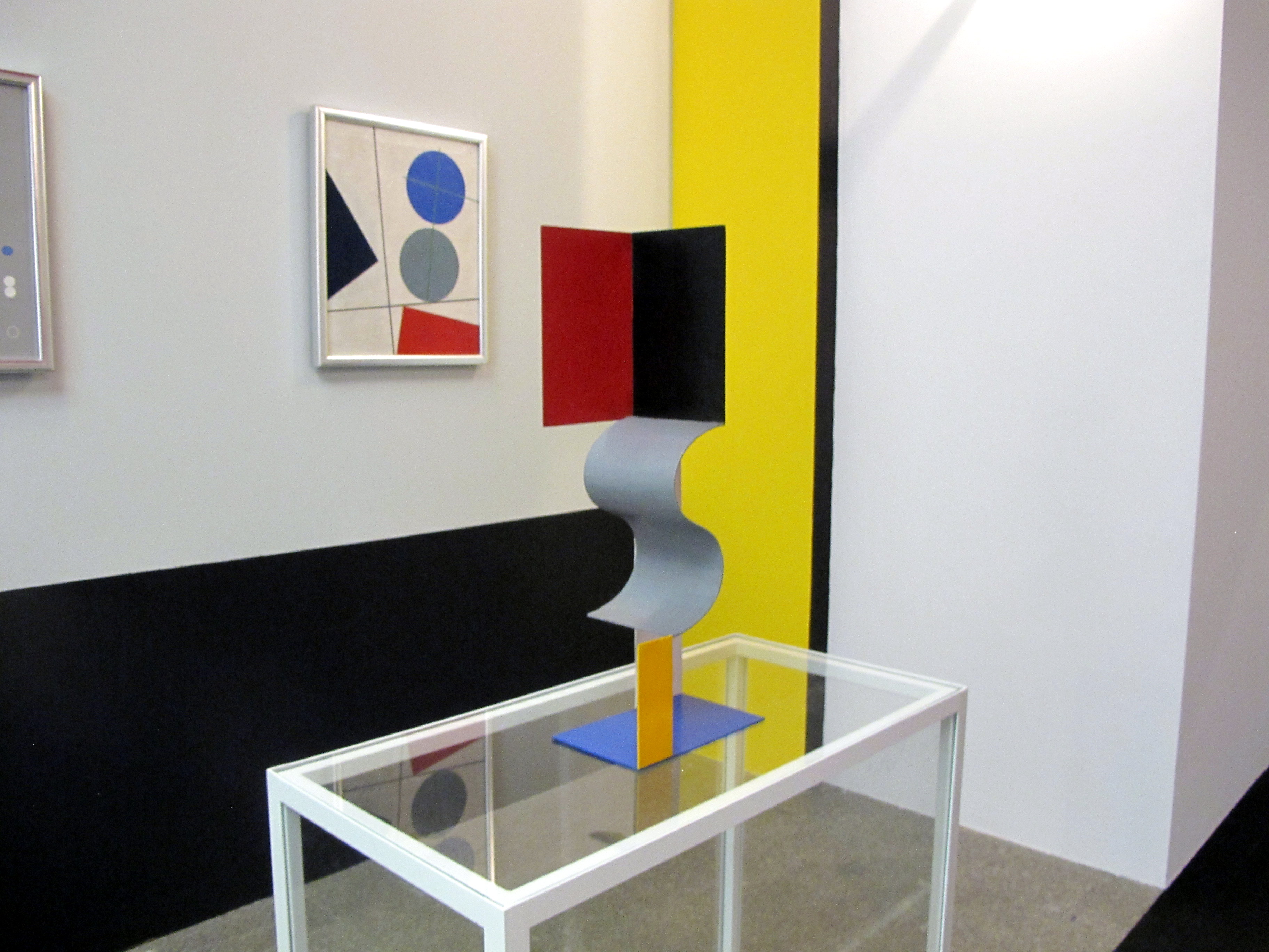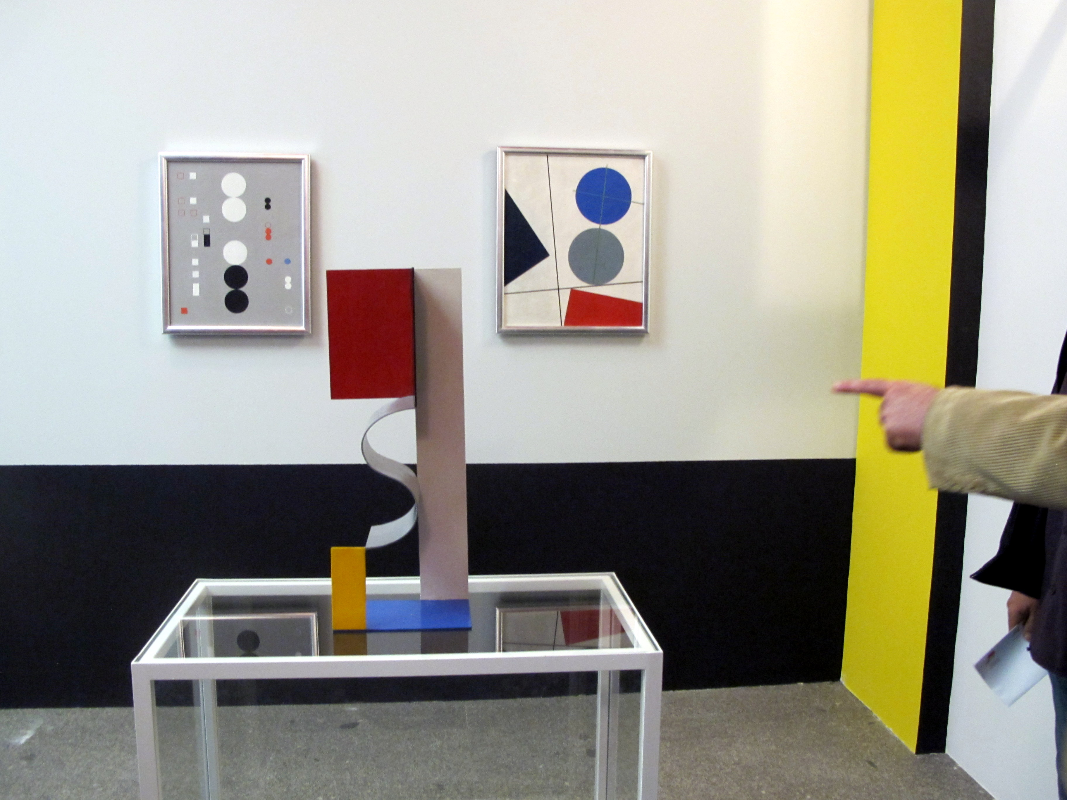 w 1947 roku. Z informacji zamieszczonej w folderze do wystawy zwiedzający dowiadują się, że (...) projekt ten obrazuje, z jednej strony, estetykę neoplastycyzmu, z drugiej, Kompozycje przestrzenne Kobro. Kolorowe płaszczyzny prostych form geometrycznych ścian, sufitu i podłogi rozmieszczonych w ścisłym matematycznym porządku, zgodnie z zamierzeniem artysty spełniają zadanie kierowania ruchem zwiedzającego i jego spojrzenia na wystawione dzieła.