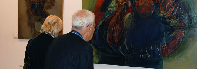 Obrazy, tkaniny i grafiki pokazane na wystawie nie są łatwe w odbiorze. Sztuka, którą uprawiała artystka to abstrakcja liryczna. Absolwentka Wydziału Malarstwa, Członkini "Grupy Toruńskiej", tworzyła w umiłowaniu do abstrakcyjnych form, ekspresyjnych kolorów. Artystka stosowała duże formaty, na których grubo, fakturalnie kładła farbę olejną. Krystyna Dąbrowiecka - Borysowska bardzo świadomie operowała barwą i strukturą obrazu. W przewrotnym obrazie "Pole grawitacji" płaszczyzna wibruje, drga, pulsuje, ale silnie jest skontrastowana z ciemną paletą barw. W ten sposób artystka czujnie kontrolowała natężenie siły a zarazem emocji w swoich obrazach. Inne jej dzieła są zapisem przeżyć, na przykład pod wpływem słuchania Beethovena, czy obserwacji przyrody, np. "Pająk", "Mrówa", "Lot chińskiego motyla". Mocne, kolorystycznie nasycone obrazy są także próbą pogodzenia się z własnym losem, chorobą, co ewidentnie widać w obrazie "Syndrom Raka". Artystka kumuluje obłe, mięsiste formy i nakłada na nie siatkę prostych, geometrycznych konstrukcji. Przez użycie faktury, stają się one trójwymiarowe. Delikatniejsze w kolorze są jej kolaże. Stosuje w nich więcej mniejszych, okrągłych form, które korelują ze sobą w taki sposób, że tworzą spójną całość. Abstrakcja liryczna artystki coraz bardziej zaczęła wychodzić poza obraz dwuwymiarowy, Krystyna Dąbrowiecka - Borysowska zaczęła szukać nowej formy wyrazu i ją odkryła. Na tym etapie tworzyła obiekty z polietylenu, włókna sizalowego i wełny. Tematycznie nawiązywały do obrazów, nadal była to abstrakcja.