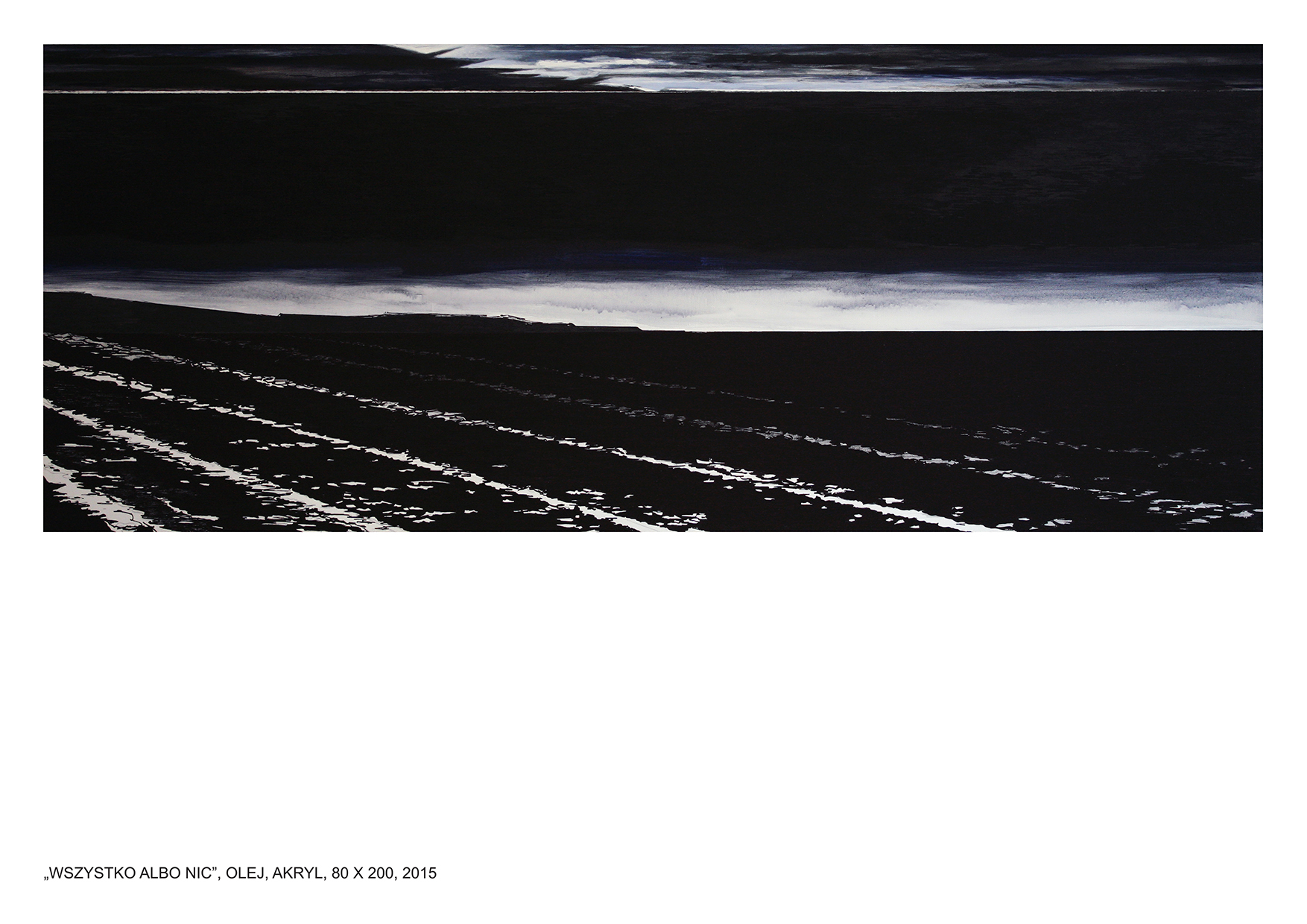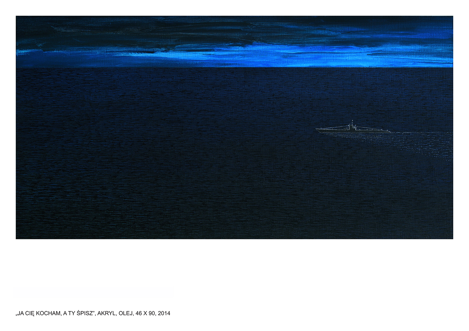 Wystawa Łukasza Rudnickiego na warszawskim Żoliborzu zapowiadała się interesująco. Wiedziony falą zaproszeń internetowych i zapowiedzi pojawiających się w sieci (sic!) zdecydowałem się wybrać osobiście na wystawę tego twórcy, o którym jak fama niesie, panuje opinia, że umie mieszać pędzlem. W dniu wernisażu zanurzyłem się dyskretnie w wieczornej aurze ciepłego wiosennego miasta i wypłynąłem na spotkanie przygody. Wśród szarych murów żoliborskich kamieniczek, majestatycznie sunąłem ulicą Mickiewicza -„Canale Grande” tej zielonej krainy, aby dotrzeć do miejsca przeznaczenia - portu, do którego zawitałem pierwszy raz. Była to kameralna galeria „wystawa”, która zachęcała już z daleka ciepłym światłem sygnalizacyjnym wydobywającym się niewielkich witryn okutych stalowymi ramami, za którymi majaczyły sylwetki pierwszych gości. Kto wie, może byli to już kolejni? Niewielki tłumek kłębił się już przed samym wejściem. Nie zatrzymywałem się jednak w tym przyjaznym gronie i bez ceregieli podążyłem bezpośrednio do wnętrza, aby obejrzeć prezentację. Ledwo znalazłem się tam, poczułem momentalnie zmianę. O ile ciepły wieczór majowego dnia skłaniał się ku zachodowi i wyrażenie rozleniwiał, a wnętrze galerii widziane z zewnątrz rozświetlało szarą uliczkę, nadając jej bursztynowego blasku, o tyle to, co zobaczyłem w środku, z miejsca mnie orzeźwiło. Mógłbym powiedzieć nawet, zamroziło - co by było przesadą, niewątpliwie jednak pierwszym wrażeniem, jakiego tam doświadczyłem była różnica temperatur. I nie mam na myśli stopni Celsjusza, ale morską przestrzeń, która opanowała tę zamkniętą przestrzeń. Chłodny stalowy koloryt wszystkich obrazów niezwykle kontrastował z ciepłym otoczeniem tego akwarium. Mocna, podniosła atmosfera obrazów wołała arktyczną ciszą, na którą składały się metaliczne dźwięki okrętowe zamrożone w lodowatej krze. O właśnie, jakiś zgrzyt roznoszący się w niezmierzonych przestrzeniach zamkniętych w klasyczne ramy obrazów dał się słyszeć każdemu, kto na moment nawet przerwał konwersacje i zerknął w stronę dowolnego płótna. I nawet ściszone rozmowy, przetykane wesołymi reakcjami skrzącymi się w potoku konwersacji nie były w stanie zmienić tego wrażenia. Ten dysonans zbudowany wokół ironiczno-patetycznej opozycji wydaje mi się zabiegiem celowym i niezwykle racjonalnym. Autor prezentacji Łukasz Rudnicki świadomy swojego warsztatu, tak zbudował swoje przedstawienie, żeby na zasadzie kontrastu, jak najlepiej zabrzmiały jego „okrętowe syreny”. Jako doświadczony kapitan, który z niejednego portu pompował paliwo, wiedział, że najlepszym sposobem na zwrócenie uwagi jest ostentacyjna opozycja. Bunt na statku ? Ależ skąd. Załoga, która zawitała na pokład tego dnia była jak zwykle sympatycznie nastawiona i skora do żartów. Nikt chyba jednak nie komentował tego dnia ani obrazów, ani treści współgrających z nimi tytułów: Ja cię kocham, a ty śpisz; Orzeł; Księżniczka Leia Ostrobramska; Już nie czekam na Ciebie; Znajdę Cię, odnajdę na pewno; Mors leniwie obserwuje balon; Jak nie śpisz, to Cię już nie kocham. Aurora. Martwa Fala, Jesteś moim skarbem. Forma i treść zdawać by się mogło kompletnie abstrakcyjne, objawiły się tego dnia niezwykle realistycznie, wręcz naturalistycznie. A cisza, która zapanowała wokół treści tam zawartych, odezwie się echem głośniejszym w przyszłości. Krzyk ciszy - jak mawiał Jan Oborniak - „kultowy autor” Stanisława Barei.