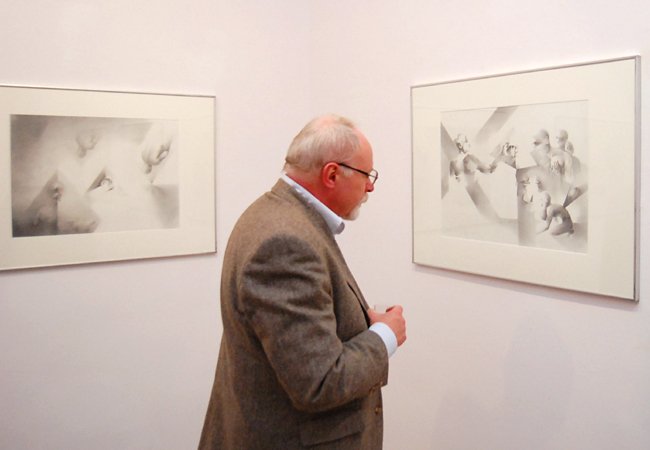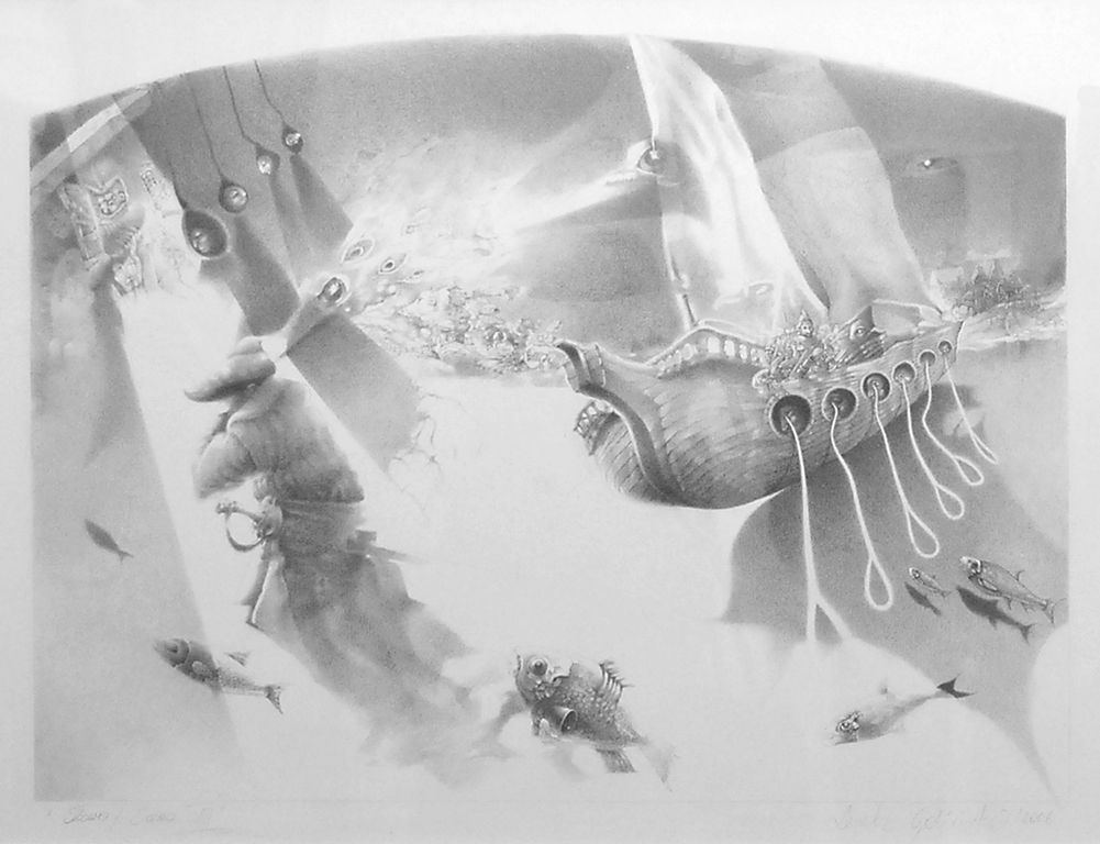 To co w pierwszej chwili uderza w kontakcie z pracami rysunkowymi Leszka Golińskiego to wirtuozeria techniczna. Precyzja z jaką artysta posługuje się tak trudnym medium, kształtowanie formy światłocieniem, niezwykła gama szarości jaką uzyskuje w swoich pracach i głębia, dzięki której obserwujemy wydarzenia w wielu planach budzą respekt oglądającego.