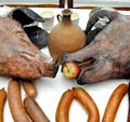 zaprezentowała dość niecodzienną ekspozycję. Gości wchodzących do galerii wita wielkanocny stół z górą pieczonych świnek, kiełbas, kiszek i kaszanek. Stół nakryty białym obrusem z miejscem dla dwóch osób.