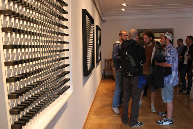 Obrazy-reliefy, które Pakalski pokazał w Promocyjnej w swojej formie i poszukiwaniach artystycznych przypominają też op art. Najważniejsze w jego pracach są przestrzeń, światło i rytm. Artysta posługuje się trójwymiarowymi kwadratami grupowanymi w różnych wariacjach. Nie ogranicza się jednak tylko do czerni i bieli jak to robił Winiarski. Wręcz przeciwnie, stosuje wszystkie barwy tęczy a poszczególne kwadraty układa według kolorów w różne wzory.