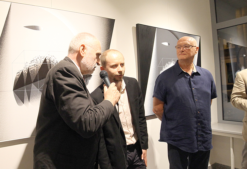 W przypadku profesora Adama Wsiołkowskiego, jako byłego szermierza uzbrojonego w pędzel malarski, to natarcie i odejście od płótna przybiera inną konotację. To UPO (Unidentified Painting Object), w odróżnieniu od UFO (Unidentified Flying Object) - który pojawia się na każdym z jego obrazów jak pozioma łza; może również być rozcięciem płótna spowodowanym sztychem szabli. Co więcej, jeśli UPO jest rzeczywiście rozdarciem na płótnie, to właśnie przez ten otwór Marcin Kowalik, niegdyś student profesora, spoglądał na swego mistrza oraz na swą przyszłą twórczość. Być może to lata spędzone na spoglądaniu przez rozdarcie w formie UPO w płótnach profesora i obserwowanie mistrza przy pracy doprowadziły Kowalika do tego, że zapragnął portretować nie tylko rozmontowywanie obrazu i jego rekonstruowanie, ale także, i zasadniczo, proces odbioru dzieła sztuki. Tak jak w przypadku twórczości profesora Wsiołkowskiego, obrazy Kowalika reprezentują wyżyny wysiłku twórczego, ten chwalebny cios w prawdę i kłamstwo.