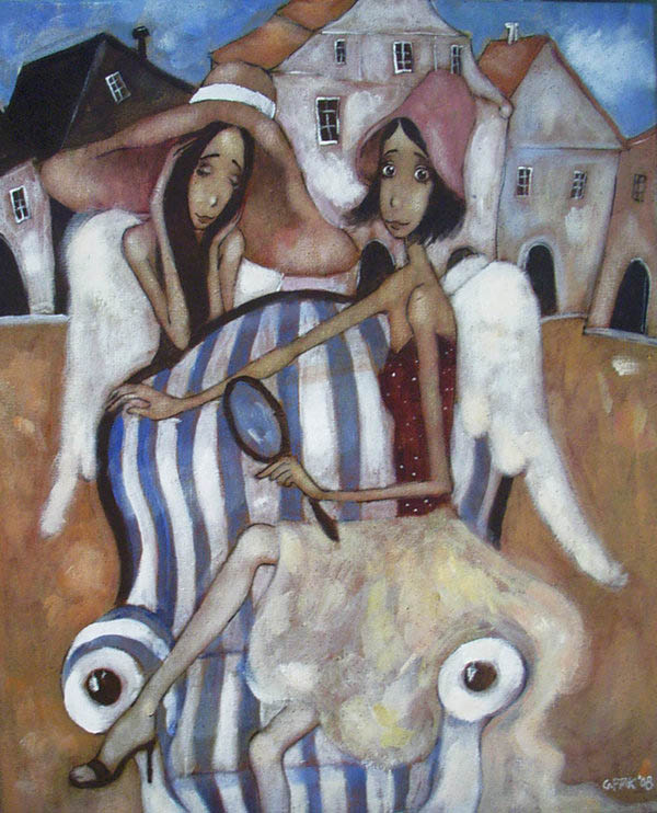 Oglądając w zestawieniu obrazy Grzegorza i Marioli, widz zaczyna dostrzegać spójność tych prac. Na "pierwszy rzut oka" ma się wrażenie, że obrazy te namalowała jedna osoba. Mają ten sam poziom emocjonalności, ale wystarczy chwila, by dostrzec odmienny świat bajkowej ilustracji Grzegorza i intymny, pełen poezji świat Marioli.