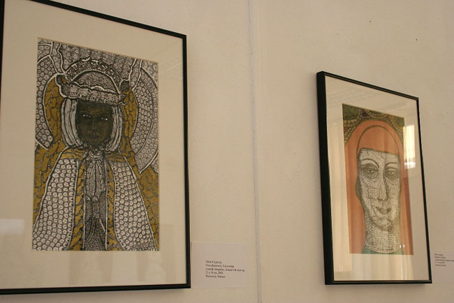 Na wystawie „Sztuka integralna” pokazane są rysunki głów. Twarze są psychodeliczne – składają się z malutkich kresek, kropek, kółeczek, przecinków, bardzo zróżnicowanych i precyzyjnych form, które tworzą piękne ornamenty - podobnie jak w twórczości Józefa Gielniaka. W pracach jest wiele odniesień – np. Madonny – jej ulubiony temat - przypominają malarstwo renesansu - zmysłowe twarze Leonarda da Vinci. Inne – podobne są do litografii o tematyce religijnej, jakie można spotkać w starej podwórkowej kapliczce. Kolor w nich jest uproszczony, nasycony, twarze Madonn natchnione i święte, wykonane jak z koronki. Jakby tego było mało Marta Gogłuska prezentuje swoje wiersze. To jeden z nich: