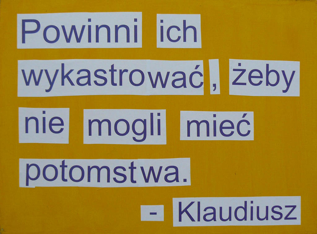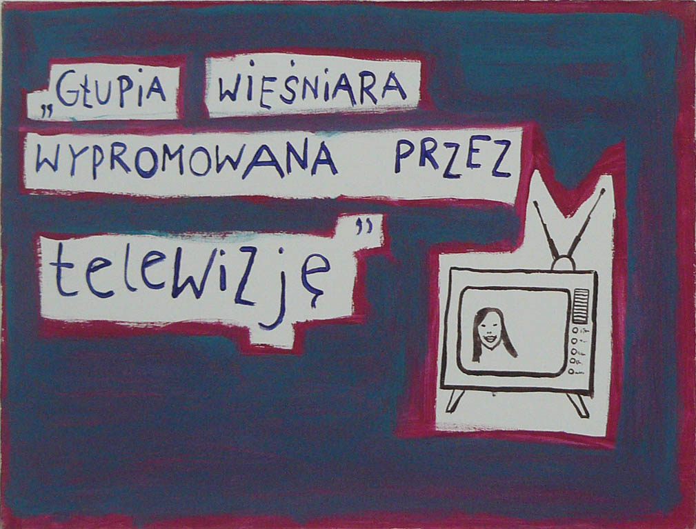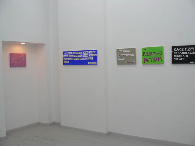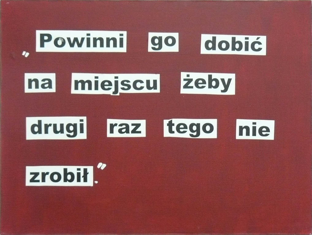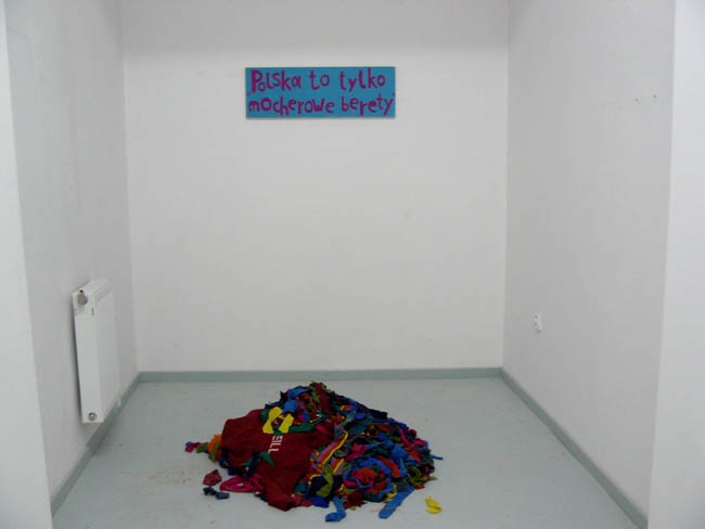 Nie ma wątpliwości, że gros komentarzy w internecie jest niezwykle prymitywna i głupia. Anonimowość wirtualnej sieci sprzyja wygłoszaniu absurdalnych i niedorzecznych sądów – osoby je piszące nie mają poczucia odpowiedzialności za wygłaszane opinie. Co więcej, często chcą po prostu zaczepić i zostać zauważonym. Przewrotnym gestem artystka umożliwia zaistnieć autorom komentarza w realnym świecie. Ze ściany galerii „bombardują” nas zdania typu: “Głupia wieśniara wypromowana przez telewizję” (o Edycie Górniak), “Wyrwać chwasta”, “Zastrzelićgo jak psa, a nie utrzymywać”, “Pewnie solidarnuchy rzuciły go pod pociąg. Kolejna ofiara panującego reżimu solidarnuchów” itp., itd. Tego rodzaju tekstami są tak naszpikowane różne fora internetowe, że w pewien sposób “uodparniamy” się na nie. Jednak zabieg, który zastosowała Kochanek-Zbroja, wprowadzenie tych komentarzy w sferę sztuki, stwarza arbitralną sytuację - z jednej strony zdania te rażą agresywnością ze zdwojoną siłą, z drugiej nadanana im forma każe spojrzeć na nie z dystansu. Ciekawe, jak zareagowałyby poszczególni autorzy komentarzy, gdyby zobaczyli je w tym nowym kontekście. Przypuszczam, że nie byliby zachwyceni, a może po prostu liczy się bycie zauważonym – to, o co walczą wypisując idiotyczne teksty. W każdym razie Kochanek-Zbroi projektem Moherowe berety udało się zwrócić naszą uwagę na ten społeczny problem w sposób lekki i niepretensjonalny.