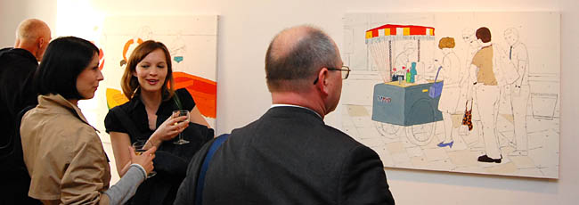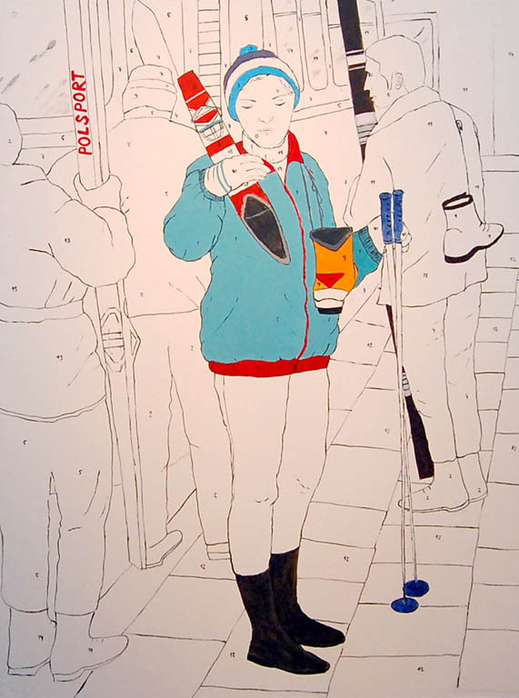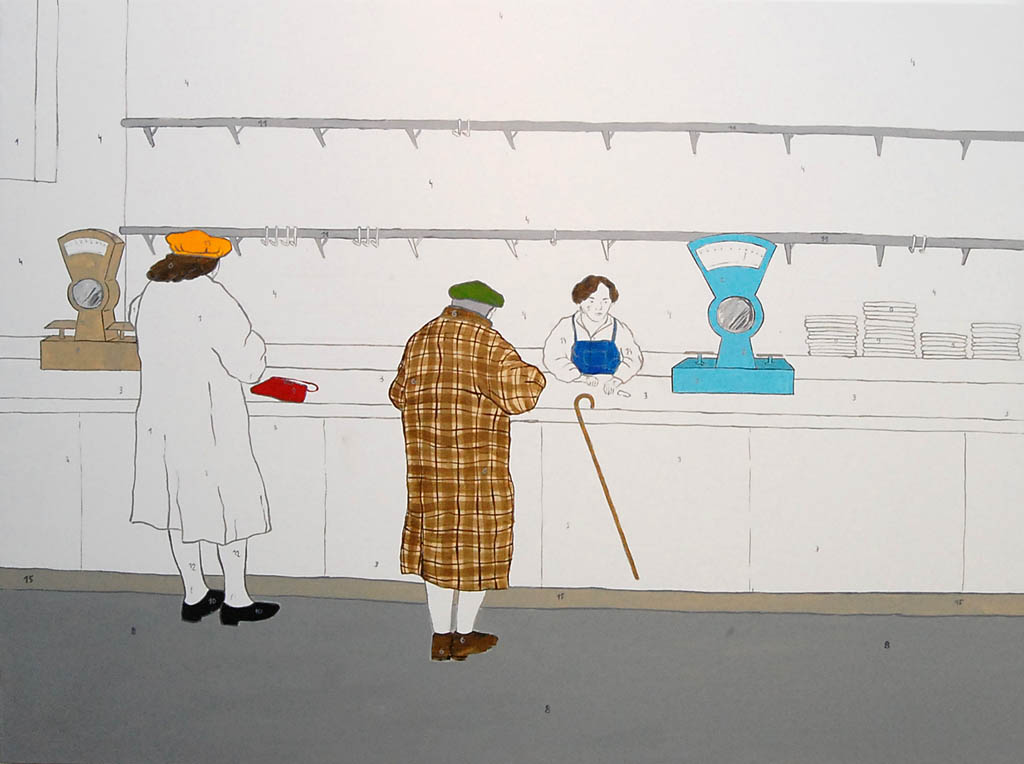 Okazało się natomiast, że w sferze prywatnych historii taki kontrast był niewielki. Oczywiście Polak był ubrany gorzej i jeździł na nartach marki Polsport, wnętrza polskich dworców były bardziej zgrzebne, a w sklepach na półkach leżała nicość, a na hakach wisiał pojedyńczy, smętny kawał słoniny. To znaczna część naszej historii, znamy ją i nie budzi ona zaskoczenia. Na Zachodzie było bogaciej, czyli w sensie malarskiem, bardziej dekoracyjnie. Niemniej jeśli spojżeć na obrazy Marty, tworzone w specyficznej dla niej manierze dziecięcej kolorowanki, to różnice nie są specjalnie widoczne.