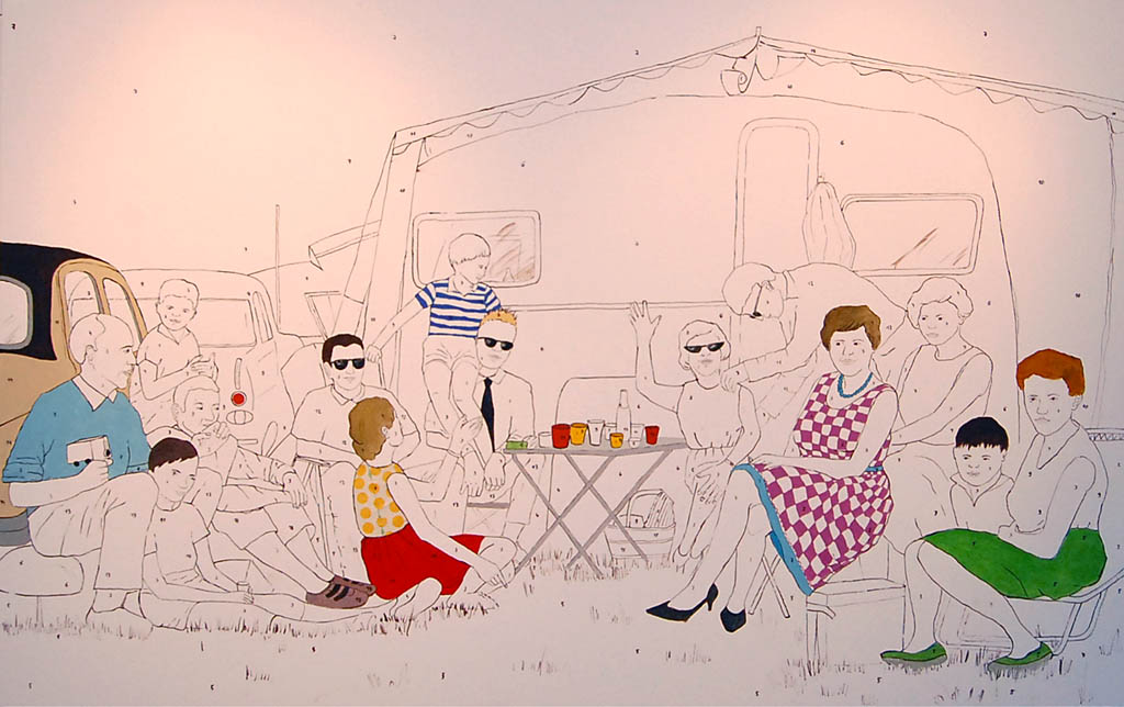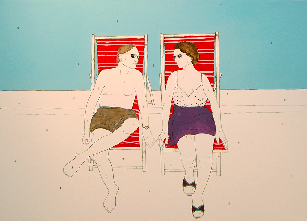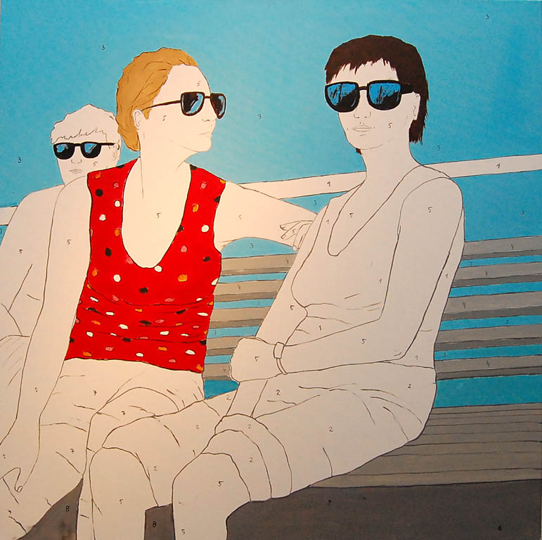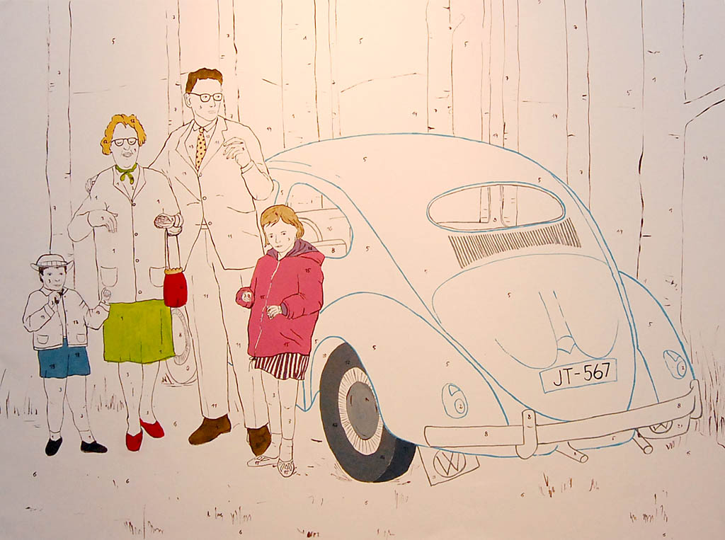 Zawsze mówimy, że Polska tamtych czasów była szara, a świat zachodni kolorowy. Kiedy Marta Kochanek-Zbroja zabiera ze swoich obrazów kolor, pozostawiając tylko kontury do samodzelnego wypełnienia barwą przez wyobraźnie widza, to okazuje się, że opowieści nasze, i te zza berlińskiego muru, są do siebie zbliżone. Oczywiście pamiętać trzeba, że cały czas operujemy prywatnymi biografiami i kadrami zatrzymanymi w naszej pamięci przy pomocy familijnego aparatu fotograficznego.