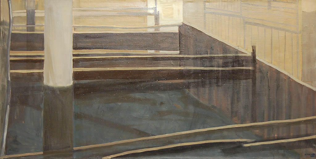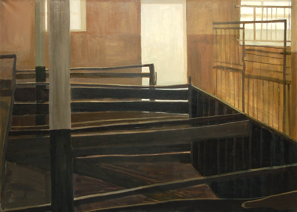 Kolejna prezentacja w Galerii Stara Prochownia - malarstwo Marzeny Huculak - skupiła się tym razem na wielkoformatowych płótnach, poświęconych rozważaniom relacji przestrzennych we wnętrzu. Artystkę interesują w tych pracach opozycje między tym, co wewnątrz i na zewnątrz, a także pomiędzy światłem i cieniem.