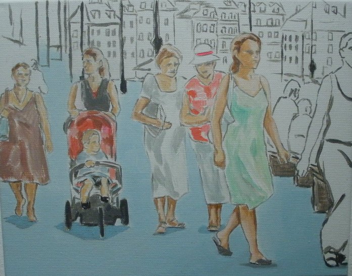 Jego tematy to ulica, przechodnie, kobieta wieszająca pranie na balkonie, pałac kultury. Przypominają fotografię, ale nie są to zdjęcia z wyjazdu, dokumentujące zabytki architektury i osobliwe zjawiska.
