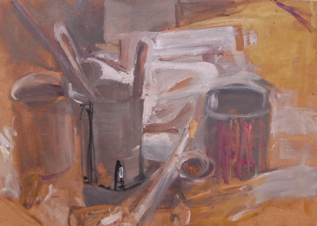 Wszystkie prace noszą wspólny mianownik, traktują o rzeczach codziennych, często wręcz dosłownie otaczających artystę - puszki farby, pęki pędzli czy naczynia. Obecne na wystawie portrety ludzkie, to także goście pracowni artysty, jego modele.