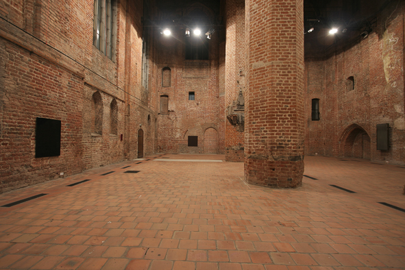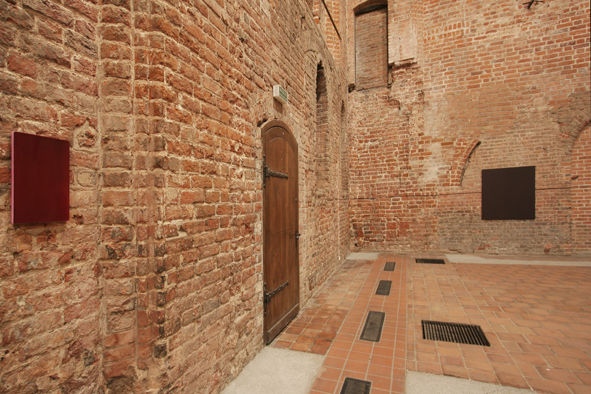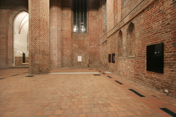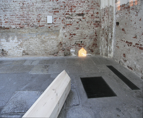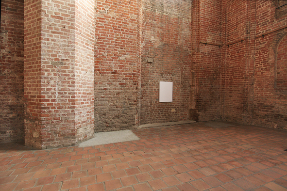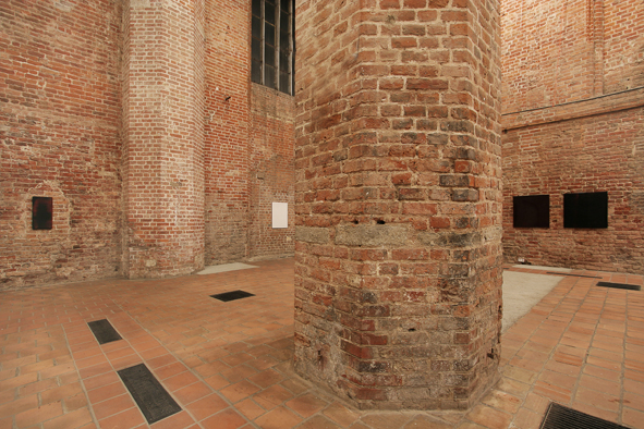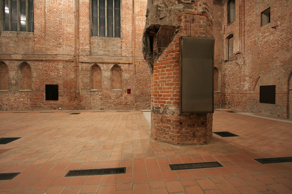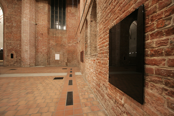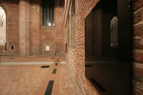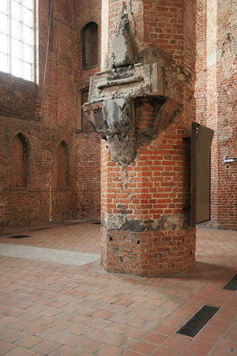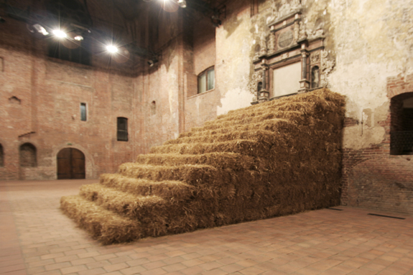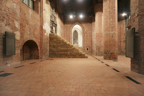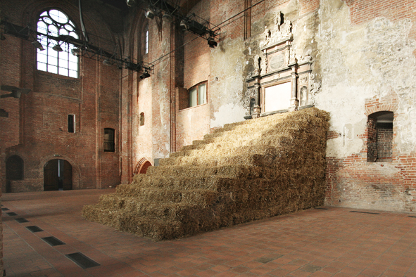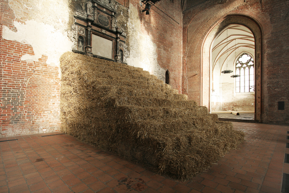 Nie można w oderwaniu od tej pracy rozpatrywać i słomianych schodów do epitafium - najmocniejszego akcentu architektonicznego we wnętrzu i jedynego zabytku, pamiętającego świetność świątyni. Schody, choć wyglądające na solidne i monumentalne, wykonane są z nietrwałego materiału - są afunkcjonalne. Schody zazwyczaj służą komunikacji - po tych zaś nie da się stąpać, obrazują zatem niestabilność naszego stosunku do tradycji miejsca, niemożność komunikacji z tą aurą, jaka towarzyszyła sakralności wnętrza.