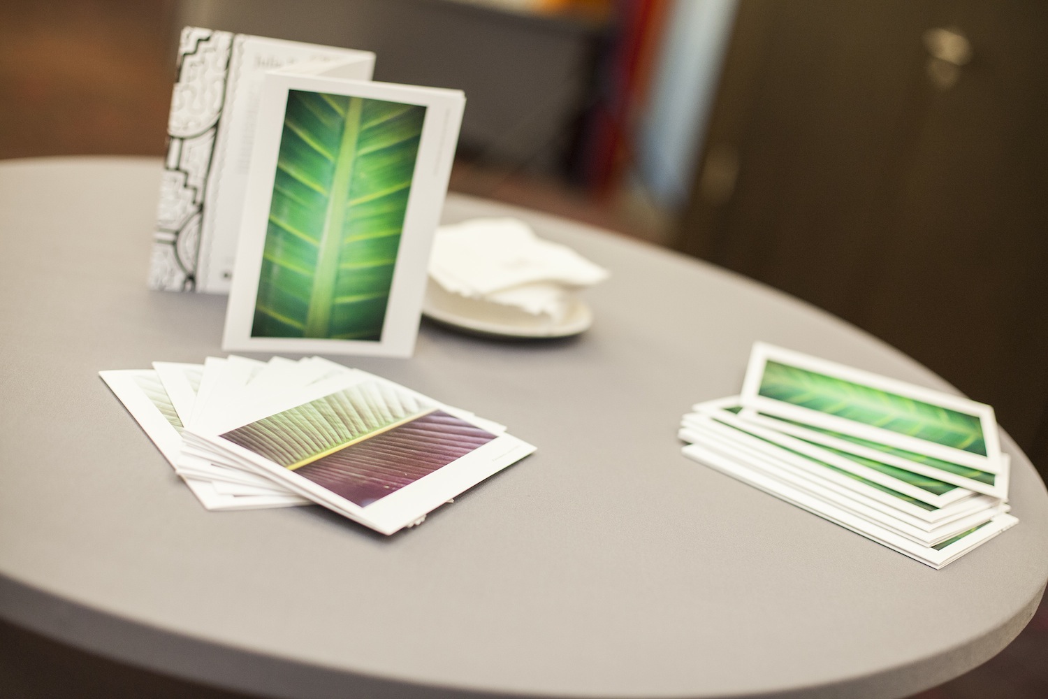 Julię Popławską zainspirowały nie tyle same zdobienia wytwarzane przez Shipibo - Conibo, co ich idea. Fakt, że wzory natury mogą przenikać się ściśle z kulturą materialną i być nośnikiem treści. Przekaz zawarty w wizerunku zielonych fragmentów i ich kontrapunkt w postaci piękna sfotografowanej dżungli to powieść o różnorodności bardzo podobnych do siebie motywów, a także o witalnej sile przyrody. Wzory liści zostały przez autorkę uwiecznione w taki sposób, aby pokazać ich „krwiobieg” i przemieszczające się w nich życiodajne światło - proces fotosyntezy.