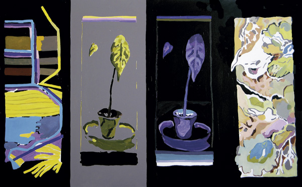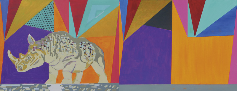 Portrety i parawany. Pierwsze kojarzą się z odsłanianiem, drugie z zasłanianiem. Wbrew pierwotnemu przekonaniu o ich antynomii, oba znaczenia mają sporą część wspólną: nie całość a fragment, nie ciągłość a przedział. Parawan odsłania fragment rzeczywistości, pozostałe zakrywając, lub zakrywa niemal całość, fragmentarycznie odsłaniając. Zarówno parawan, jak i twarz człowieka ogranicza naszą władzę spojrzenia. Twarz człowieka jest bodaj najbardziej wymowną i komunikatywną częścią ciała, jednak nie transparentną. Twarz nie udziela odpowiedzi na pytanie o całość człowieka. Jest komunikatem danej chwili. Jest raczej wyzwaniem, pytaniem i tajemnicą. Twarz wymusza odpowiedź i reakcję. Spotkanie z twarzą innego człowieka może być znaczącym „przystankiem” w życiorysie; przypomina o zagubionym sensie, uświadamia realność indywidualnych zasobów refleksji, świata przeżytego, zapamiętanego, choć przecież nie spisanego i nie wypowiedzianego, poza historycznego. Jest tajemnicą. Jest także lustrem dla wpatrującego się w nią, dając świadomość własnej i cudzej – odrębnej lecz scalonej – co ważne - tożsamości. Wymusza respekt dla życia obecnego przez pamięć. Portrety malowane przez Grzyba (zwłaszcza te malowane po roku 2010) są nostalgiczne. Twarze portretowanych osób umieszczone na pierwszym planie jawią się jako zastygłe, oblicza zamyślone, a wzrok portretowanych nieruchomo zawieszony w przestrzeni. (…) to spotkanie z twarzą człowieka konkretnego; człowieka o rozpoznawalnym imieniu i nazwisku, często profesji bądź pasji, nierzadko umiejscowionego w konkretnym, najczęściej miejskim środowisku. Najnowszy cykl portretów zaskoczył mnie jeszcze jednym. Ryszard Grzyb (…) czyni zaskakujący ukłon w stronę prekursora modernizmu – Pieta Mondriana. Wszakże na dwóch z prezentowanych portretów widoczna jest kalka neoplastycznego języka i jego kompozycji z czerwonym, niebieskim i żółtym. Kompozycje najnowszych obrazów Grzyba nabywają coraz większej klarowności układu i uspokojenia form. Ta tendencja dotyczy również najnowszych Parawanów. Parawany mówią o fragmentaryzacji życia. Niektóre z obrazów tego cyklu mają wyraźny podział na kwatery. Dzielone są na równe cztery części, z których każda świadczy o różnorodności odsłon, często tego samego zjawiska. Jednak Parawany, których głównym bohaterem jest nosorożec nasuwają inną jeszcze refleksję. Są jak teatralna dekoracja, bądź jak ilustracja wykorzystywana w japońskim teatrze obrazkowym Kamishibai. Gdyby tylko ich format pozwolił, mogłyby, wsuwane kolejno w okienko parawanu butai, opowiadać o życiu samotnika wobec zagrożeń jakie niesie świat, o jego sile przetrwania polegającej nie tylko na fizycznych predyspozycjach, bardziej przecież na wyobraźni. W opowiadaniu tym rzeczywisty świat zanika, przysłonięty parawanem pulsujących życiem energetycznych kolorów, na tle których nosorożec – aktor pierwszoplanowy – wygłasza monolog o niezłomności trwania.
