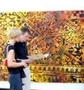 Oryginalność tematyki, w której kręgu porusza się artystka staje się mniej ekscentryczna przy staranniejszym oglądzie prac. Fascynacja tkaniną - jej splotem, barwą, osnową - tak, ale przede wszystkim zawartej w tkaninie symbolice ludzkiej wrażliwości na otaczający świat. Artystka odnosi się do tej właśnie sfery. W tkaninie zapisane są wzory kultury wielu pokoleń żyjących przed nami. Jak je odbiera artystka i czy Jej przekaz trafi z kolei do współczesnego odbiorcy, możecie się Państwo przekonać odwiedzając tę ciekawą wystawę.