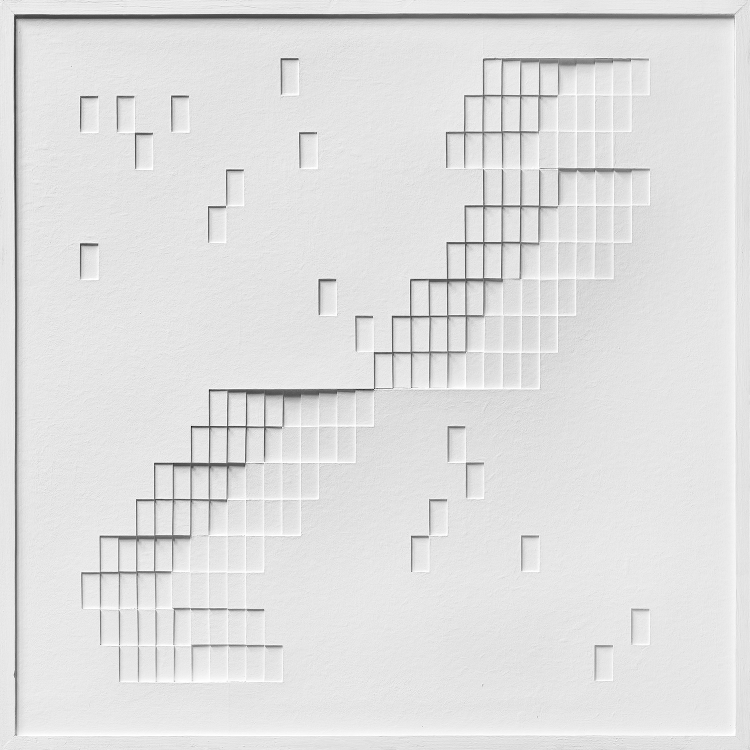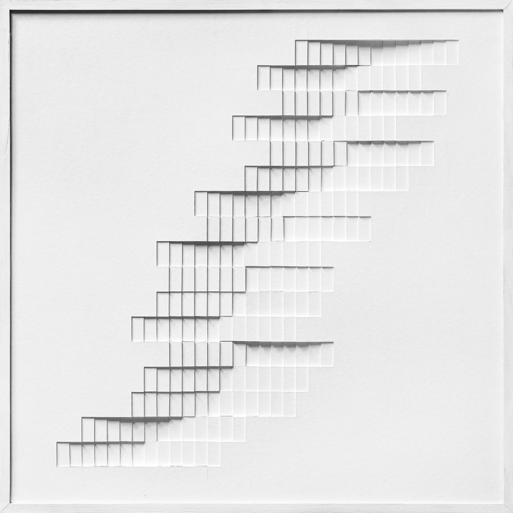 Prezentowane reliefy Orbitowskiego są jego flagowymi i obecnie bardzo poszukiwanymi dziełami. Precyzyjne konstrukcje geometrycznych zagłębień i wypukłości białej płaszczyzny pulsują światłem, które podkreśla grafika cienia. Doskonale wyważone kompozycje tworzą harmonijne zapisy przywołujące muzyczne rytmy.