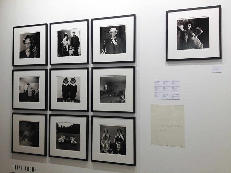 Wśród fotografii współczesnych swoją ceną uwagę zwracała praca w galerii Fraenkel autorstwa Hiroshi Sugimoto Revolution 008, Caribbean Sea, Yucatan (1990/2012) w edycji 5 za 400 tys. dolarów. W galerii Westlicht można było nabyć odbitki fotografii Diane Arbus z lat 1962-1970 wykonane przez Neila Selkirka w 1973 roku w edycji 5/50 za 85-220 tys. euro. Najdroższa (na zdjęciu w środku) to Identicall Twins, Roselle.