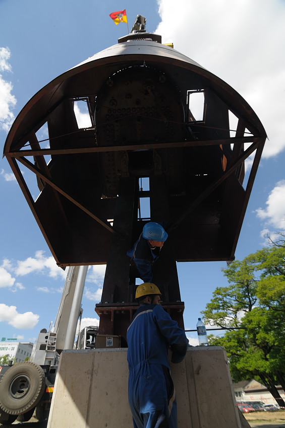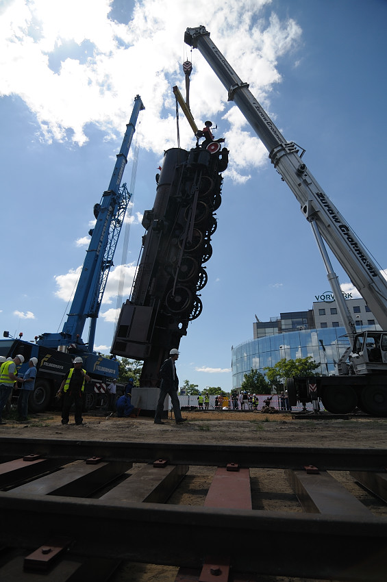 Sama rzeźba już stanęła. Lokomotywa Ty2-1035 w nocy z 21 na 22 czerwca odbyła swoją ostatnią trasę. O godz. 00:00 wyruszyła z Długołęki. Wrocław pokonała ulicami Czajkowskiego, Przybyszewskiego, Kasprowicza i Żmigrodzką. O godzinie 03:40, w blasku fleszy i pod obstrzałem kamer, minęła Most Milenijny, a następnie ul. Legnicką dojechała do stacji końcowej „Plac Strzegomski”. O godz. 9:00 we wtorek miał rozpocząć się montaż Ty2-1035. Na tę chwilę czekali uzbrojeni w aparaty i kamery reporterzy oraz fotograficy i fotograficy-amatorzy, którzy postanowili wziąć udział w Photo Day, zorganizowanym przy współpracy z portalem Moje Miasto. Niektórzy z nich podjęli się też próby złapania pociągu nocą na trasie przejazdu. Pociąg do nieba miał zostać postawiony przy pomocy trzech dźwigów. Z powodu awarii jednego z nich montaż został przełożony na dzień następny tj. na środę 23 czerwca. Specjalistyczny dźwig zastępczy przyjechał z Katowic. Lokomotywa stanęła ok. południa. Po godzinie 14:00 rozpoczął się montaż torów, będących częścią rzeźby. Wczesnym popołudniem kierownik budowy uroczyście ogłosił zakończenie prac.