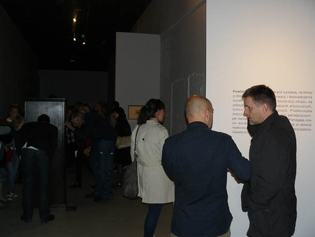 Wystawa została przygotowana bardzo wnikliwie – pokazując teorię widzenia z różnych perspektyw. Zresztą nie do przecenienia jest współkuratorstwo Andrzeja Turowskiego, autora licznych opracowań poświęconych sztuce polskiej awangardy. Ekspozycję podzielono na dwie zasadnicze części: pierwsza dotyczy ideologii widzenia, druga technologii widzenia. Prace, umieszczone w poszczególnych salach, zostały podzielone problemowo, składają się na nie: Widzenie powidokowe (tu znalazły się m.in. słynne Powidoki Strzemińskiego oraz wcześniej nie pokazywane kalki jego autorstwa), Widzenie iluzjonistyczne (poświęcone perspektywie), Widzenie fantazmatyczne (gdzie jest wyświetlany słynny Pies andaluzyjski Luisa Buñuela i Salvadora Dalí), Widzenie aleatoryczne (z Kineformami Pawłowskiego), Widzenie peryferyjne (tu są prezentowane m.in. prace Ruffa i Libery), Widzenie kolażowe (odwołujące się do awangardy lat 20. i 30. z filmami Themersona), Widzenie sferyczne (tu znalazły się cyfrowe prace Zbigniewa Rybczyńskiego). W oddzielnej części wystawy zostały pokazane prace poświęcone technologiom widzenia, gdzie znajduje się fotplastykon, w którym możemy obejrzeć egzotyczne przedstawienia. Generalnie każde z prezentowanych zagadnień traktuje o różnych rodzajach postrzegania w sztuce. Nasze oko podąża za ideami artystów, przeplatającymi się z technologiami widzenia. Powtórka z teorii widzenia to ważna i interesująca lekcja dotycząca zagadnienia percepcji w sztuce.