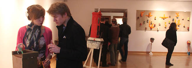 Staszek Wójcik łączy malarstwo z rzeźbą. W Galerii Promocyjnej na wystawie Tożsamość artysta prezentuje kilkanaście obrazo-przedmiotów, które nazywa Kapliczkami.